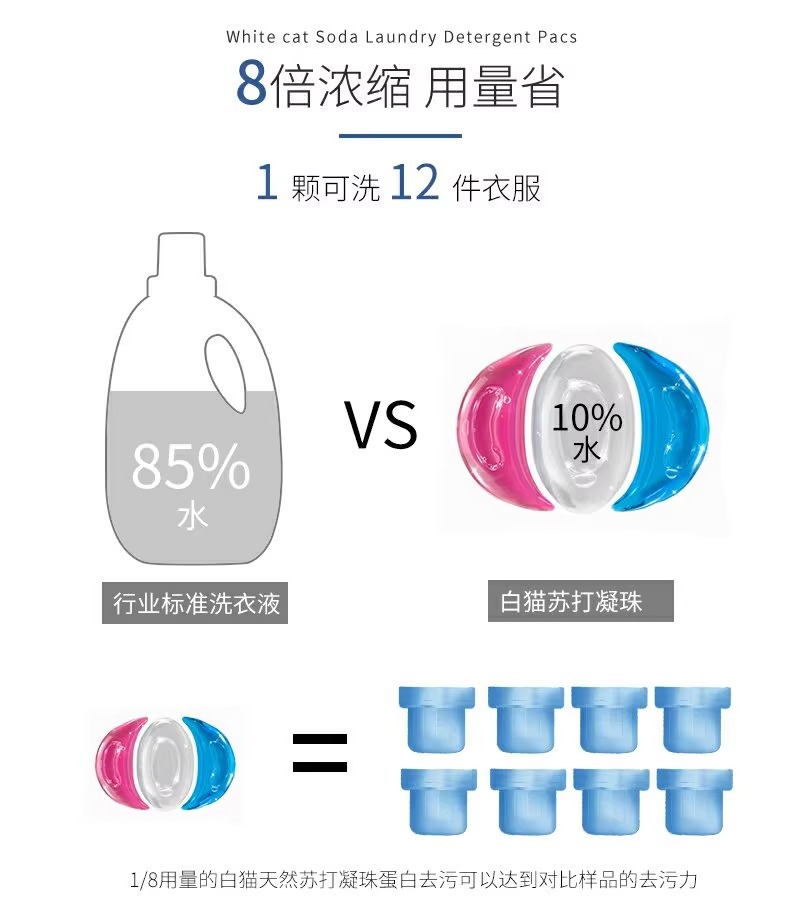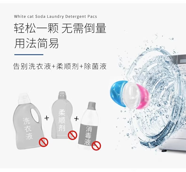 흰 고양이 천연 소다 세탁 응고 비즈 20 항균 및 냄새 제거 얼룩 및 냄새 제거용 3 색 세탁 볼 홈 팩스토어 가기