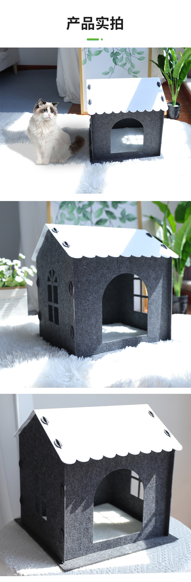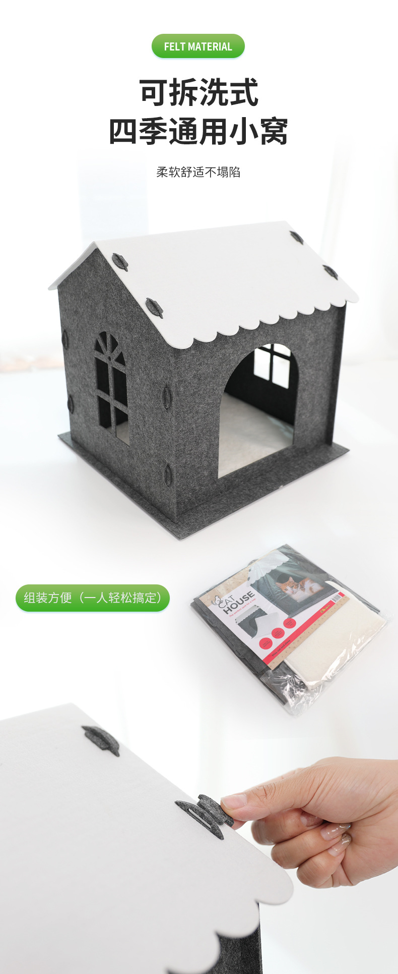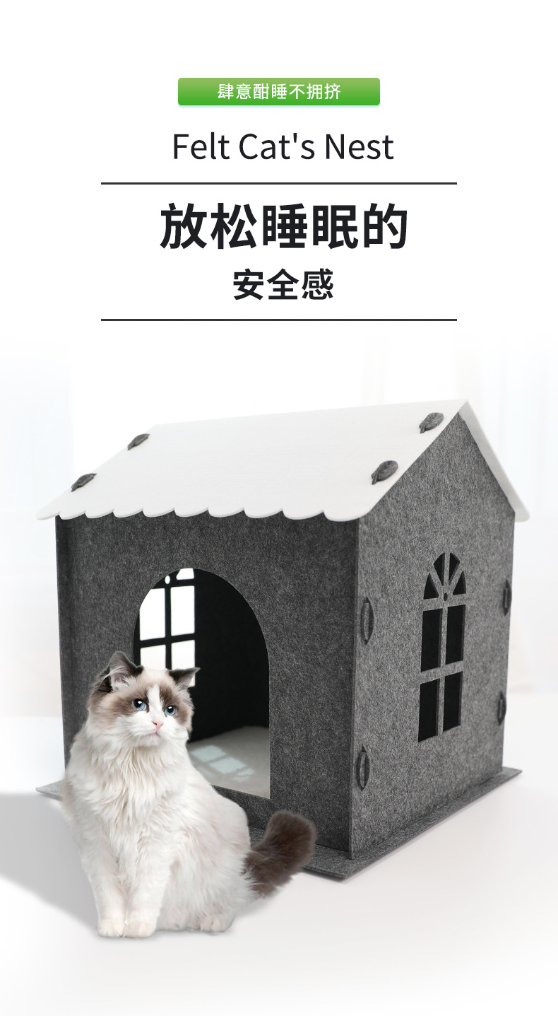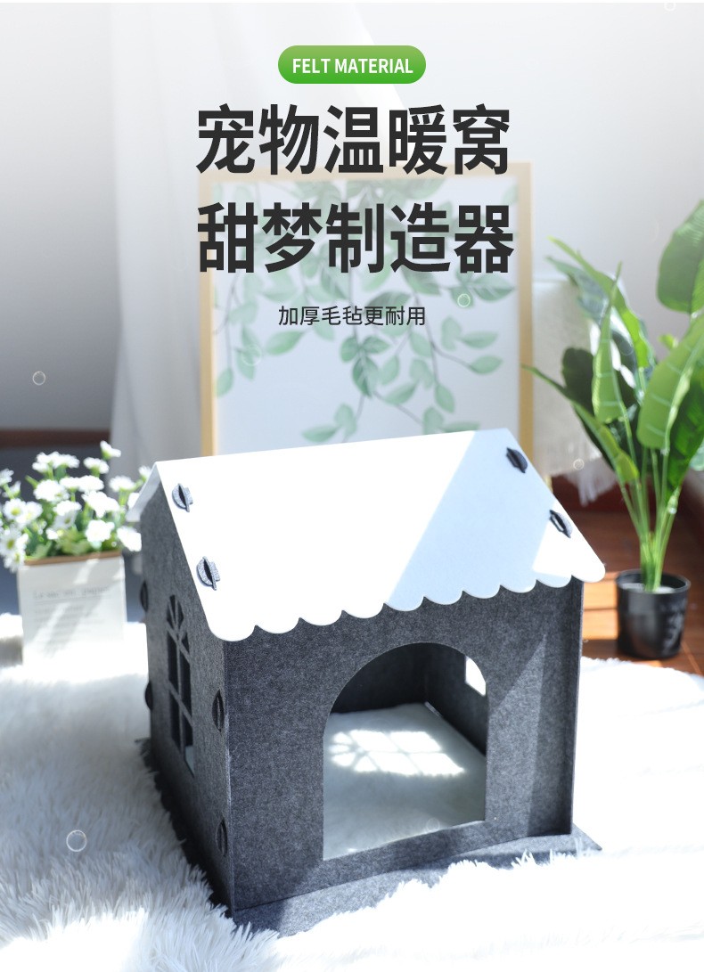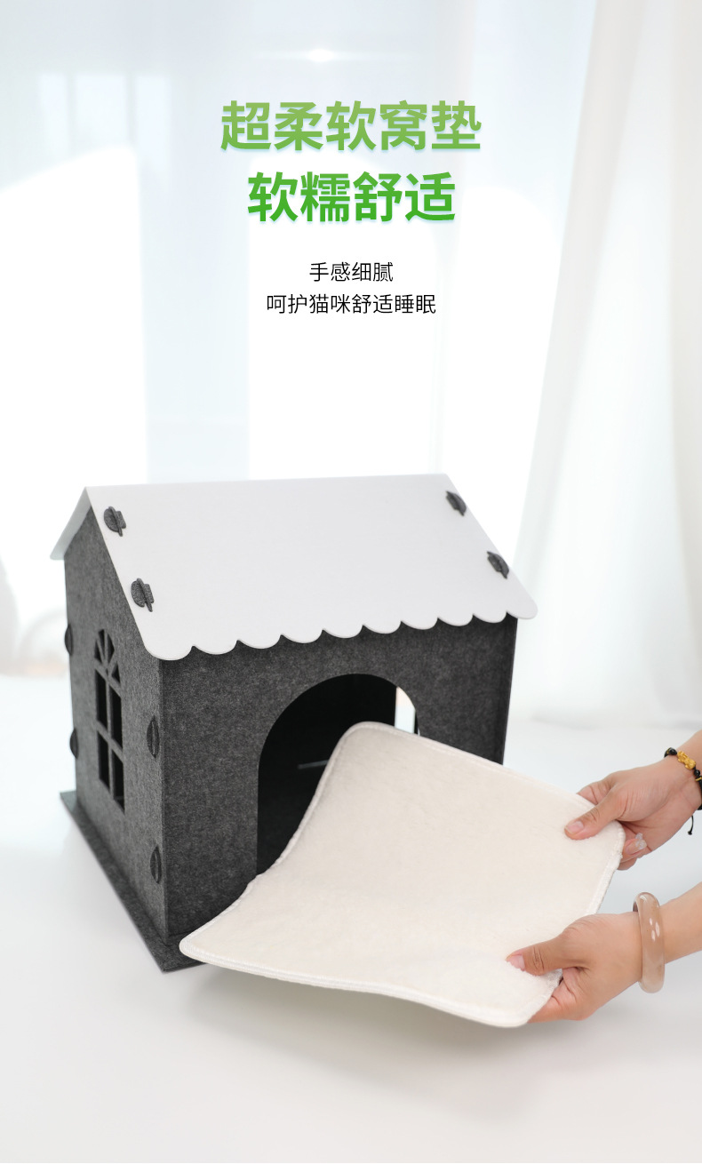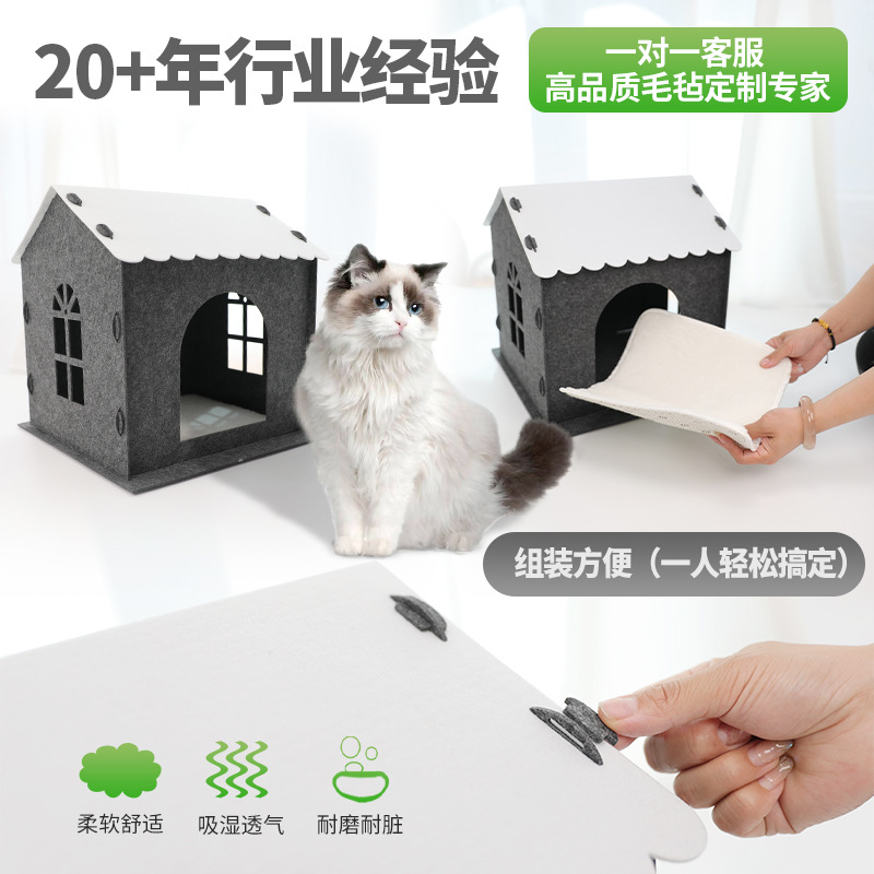 사계절 사용 가능한 펠트 고양이 집 반폐쇄형 탈부착 및 세탁 가능한 애완동물 집 단층 연결 가능한 애완동물 빌라