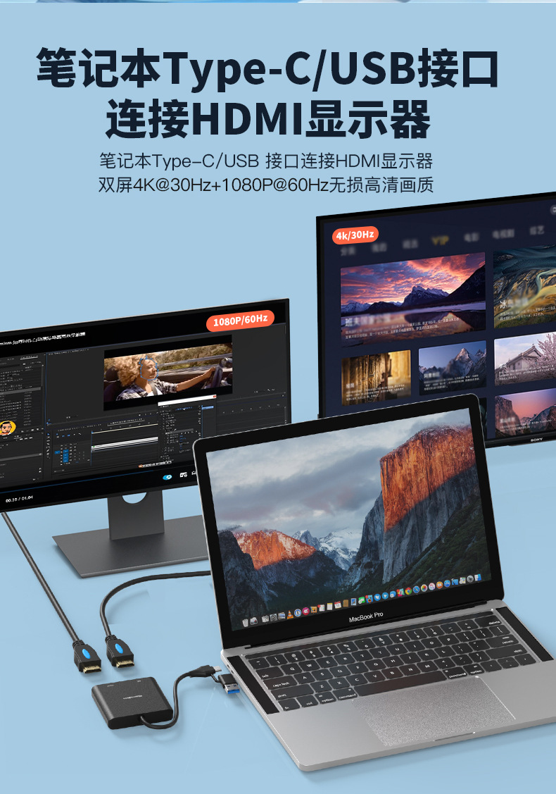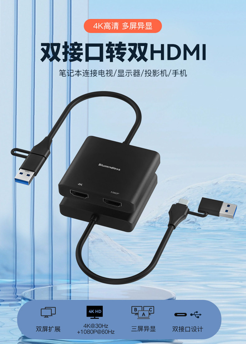 USB/type-c-듀얼 HDMI 변환기 4K HD 도킹 스테이션 노트북 데스크탑 M1/2 4화면 다른 디스플레이스토어 가기
