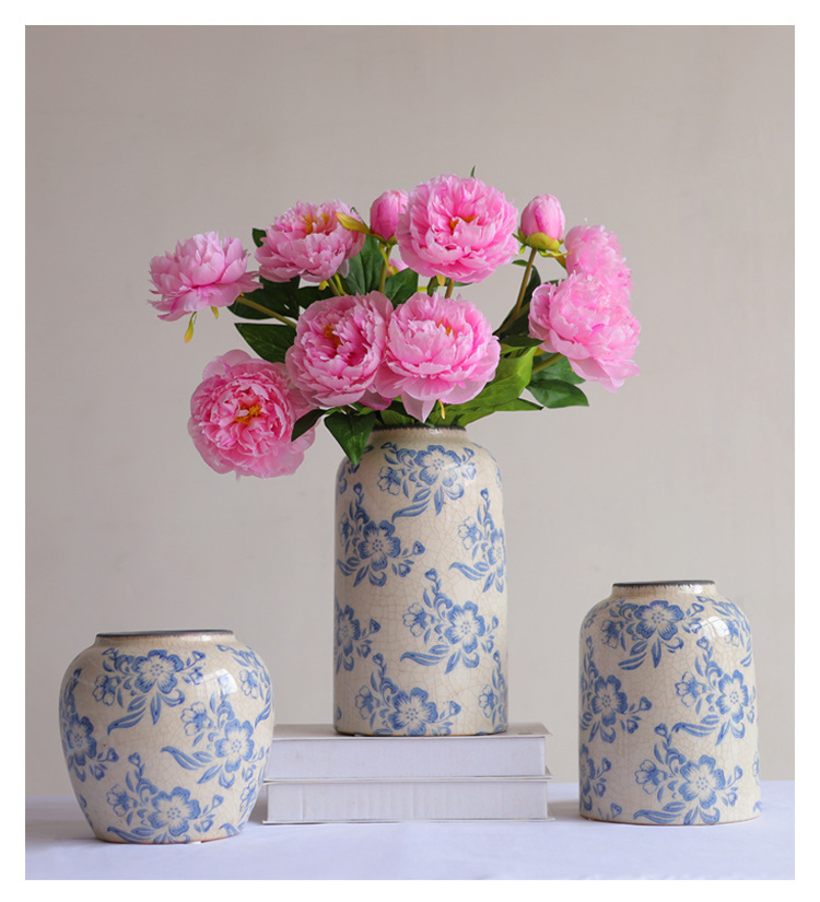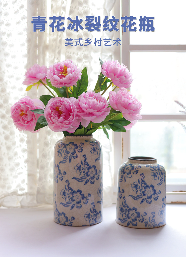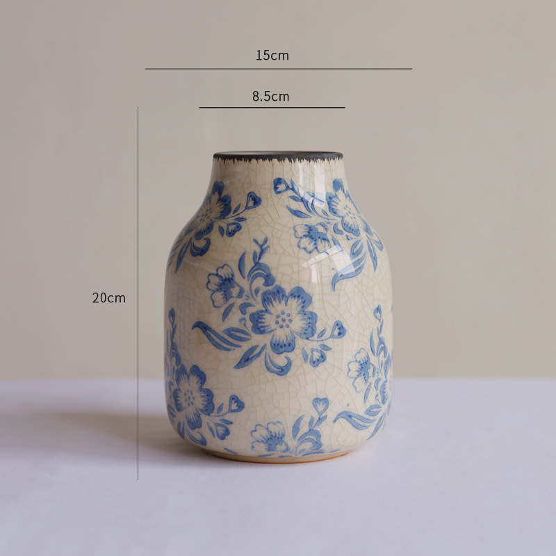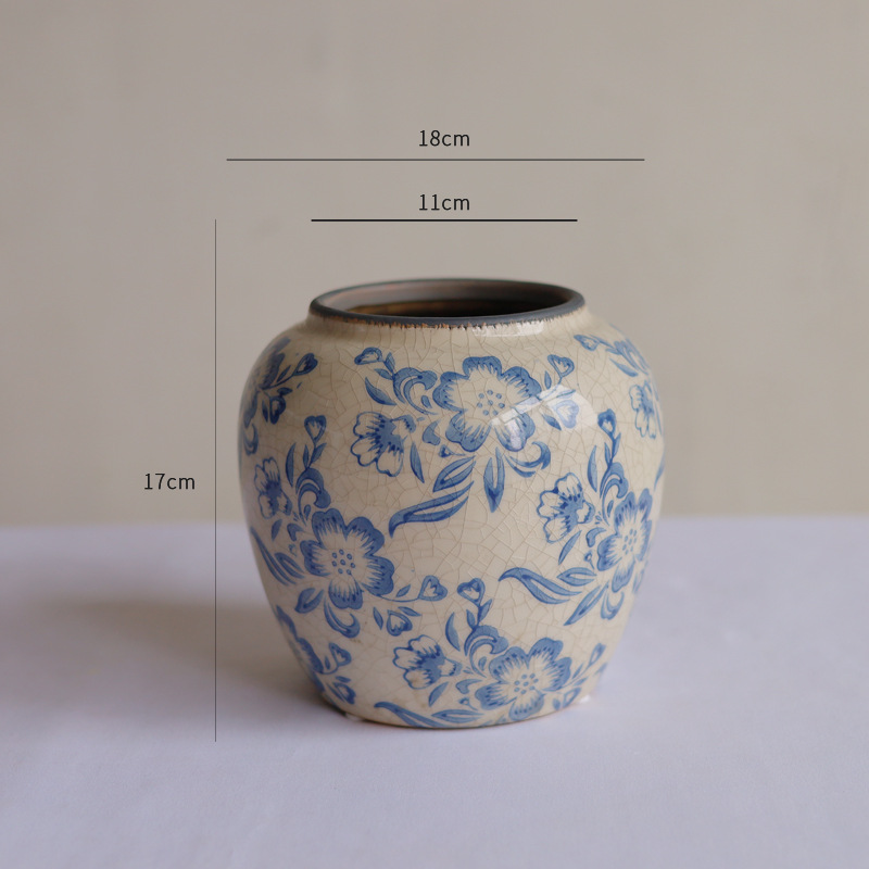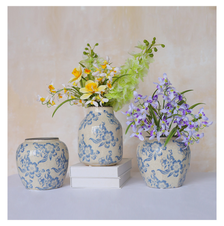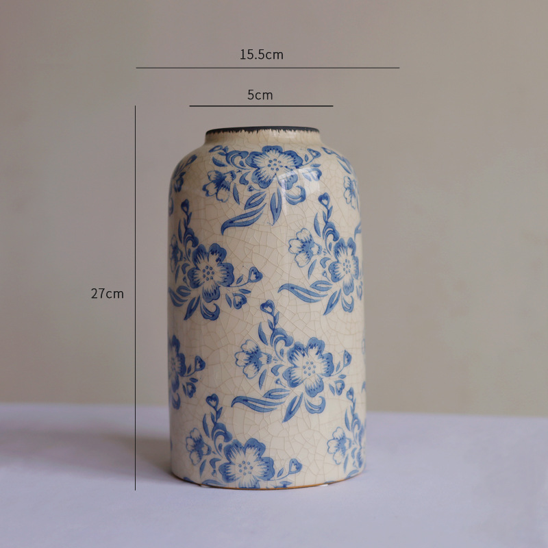 파란색과 흰색 도자기 꽃병 세라믹 고급 감각 프랑스 국가 빈티지 꽃병 세라믹 드레스 크래킹 된 꽃병 수경