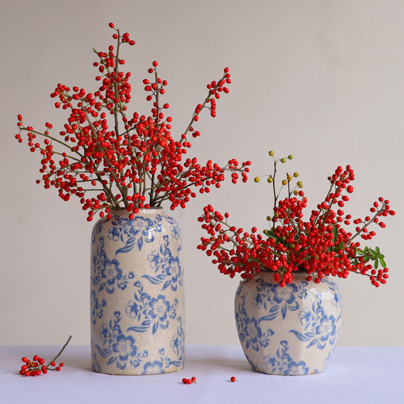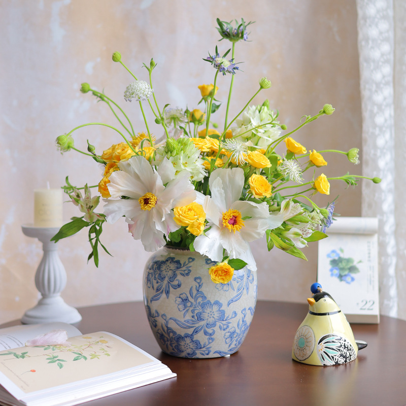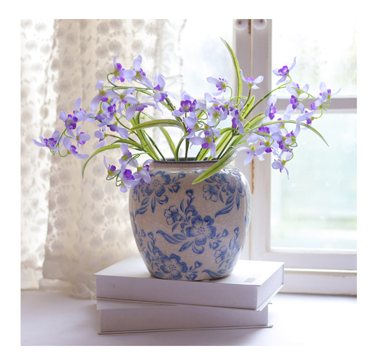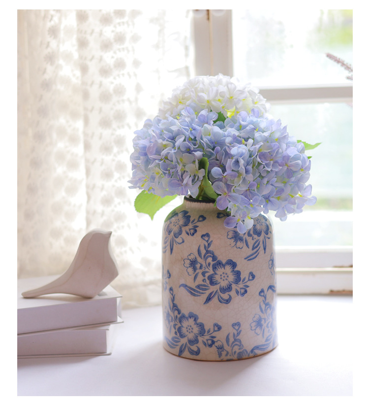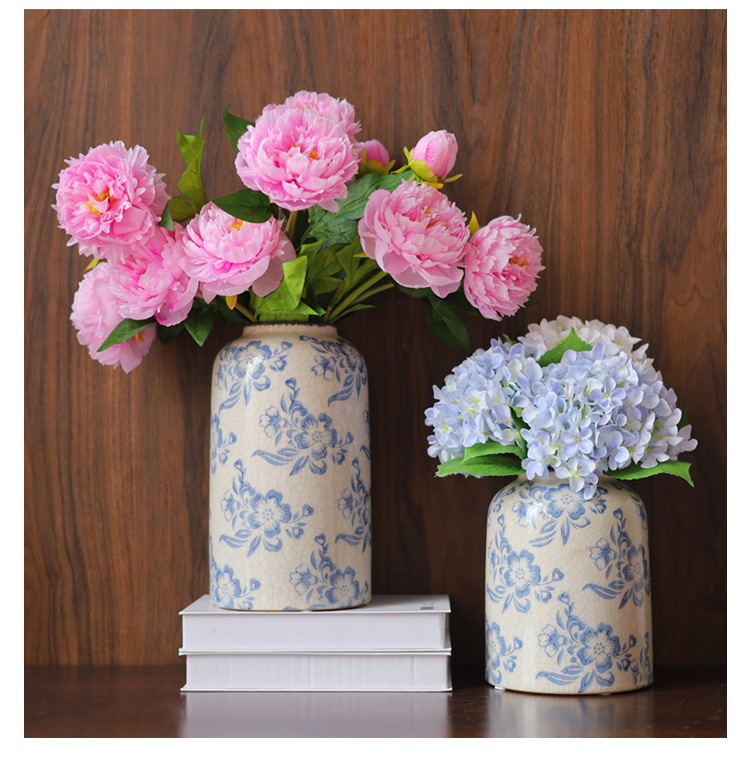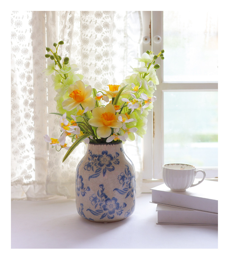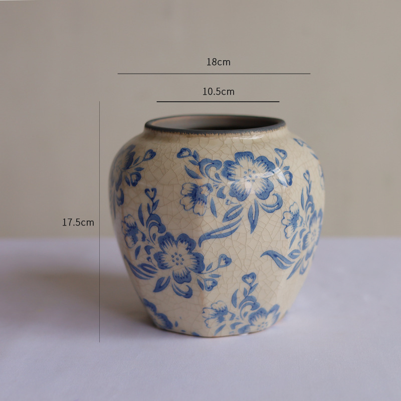 파란색과 흰색 도자기 꽃병 세라믹 고급 감각 프랑스 국가 빈티지 꽃병 세라믹 드레스 크래킹 된 꽃병 수경