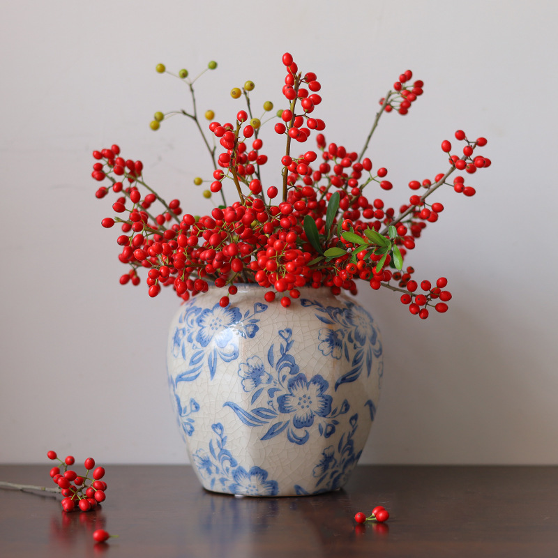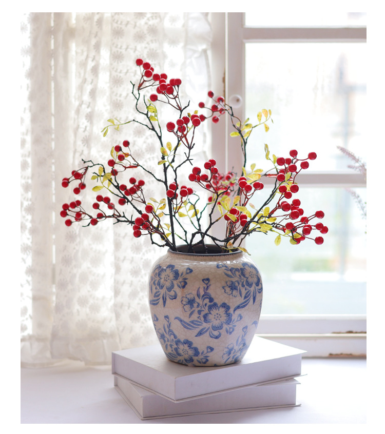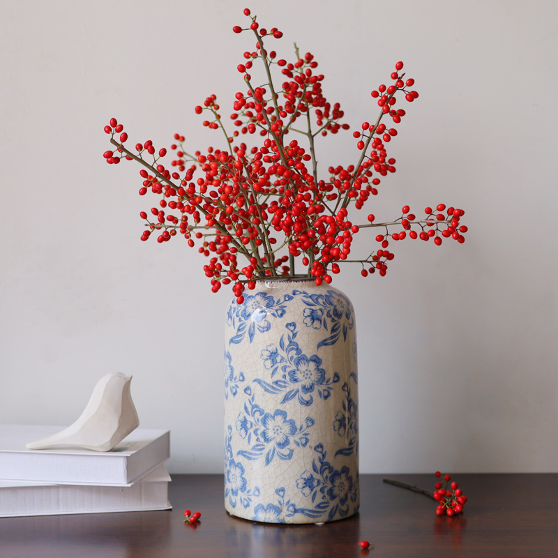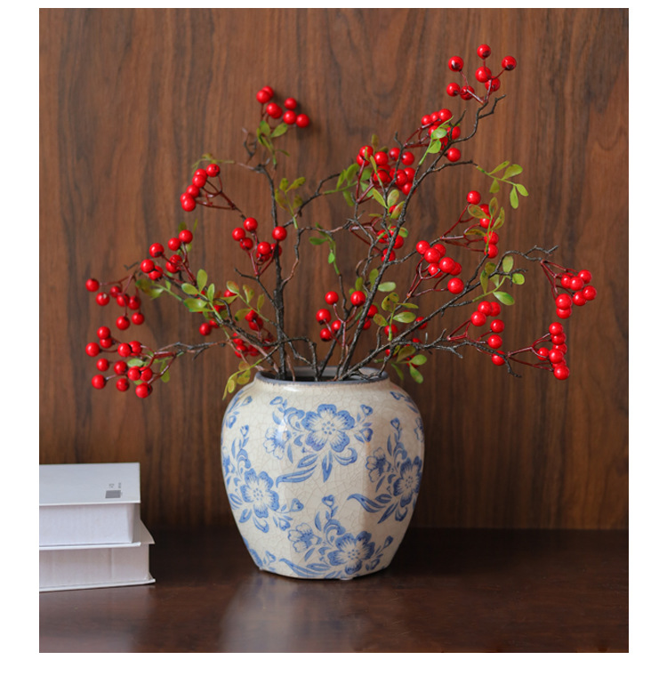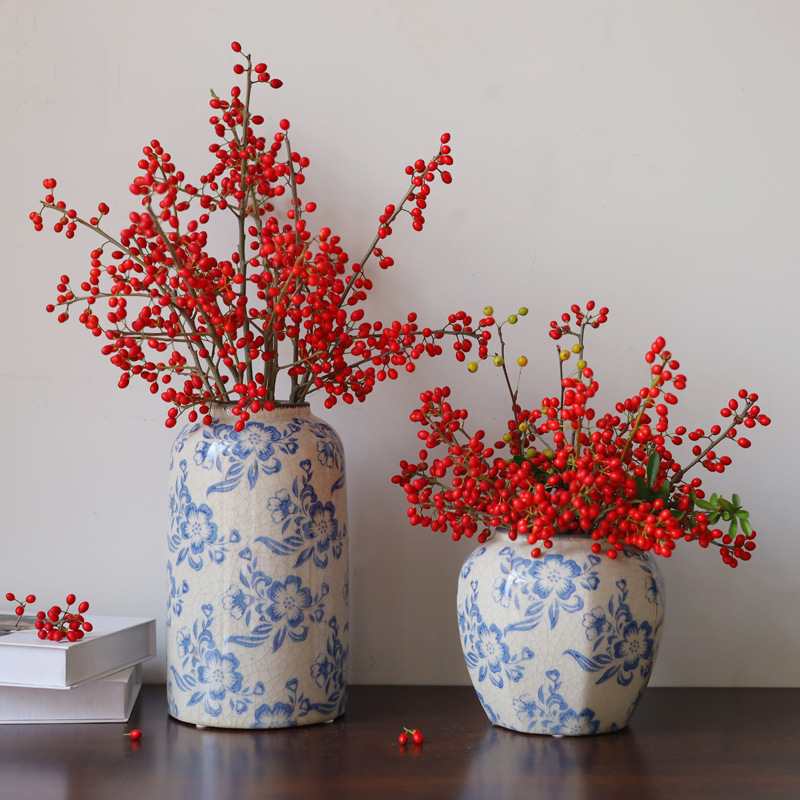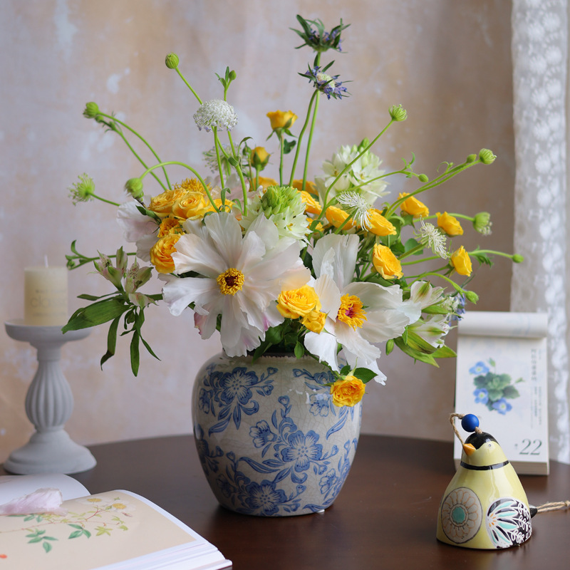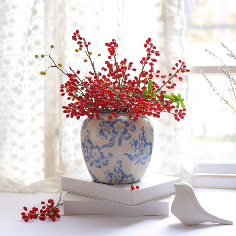 파란색과 흰색 도자기 꽃병 세라믹 고급 감각 프랑스 국가 빈티지 꽃병 세라믹 드레스 크래킹 된 꽃병 수경