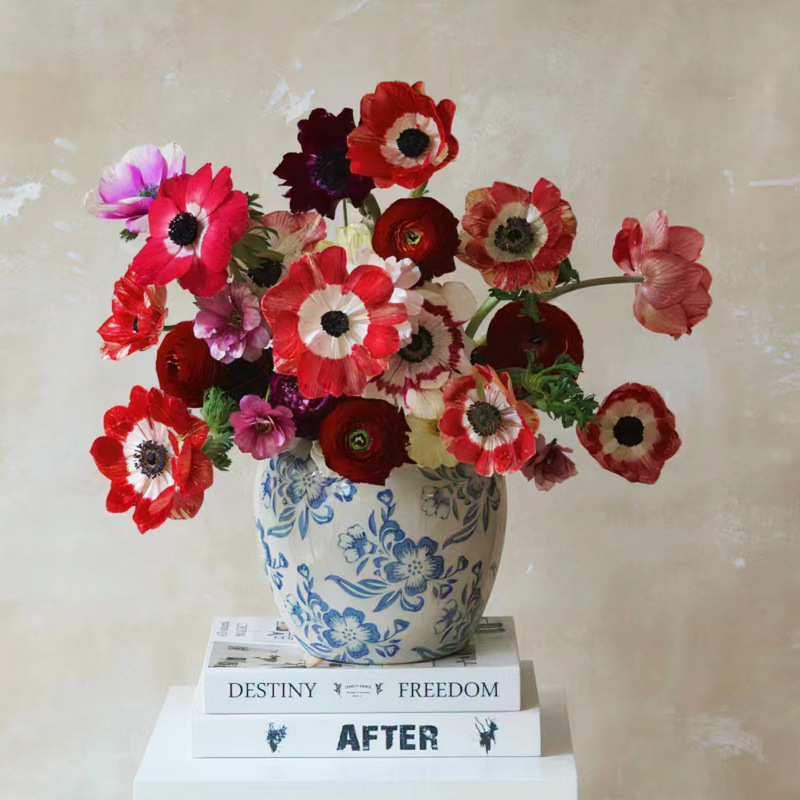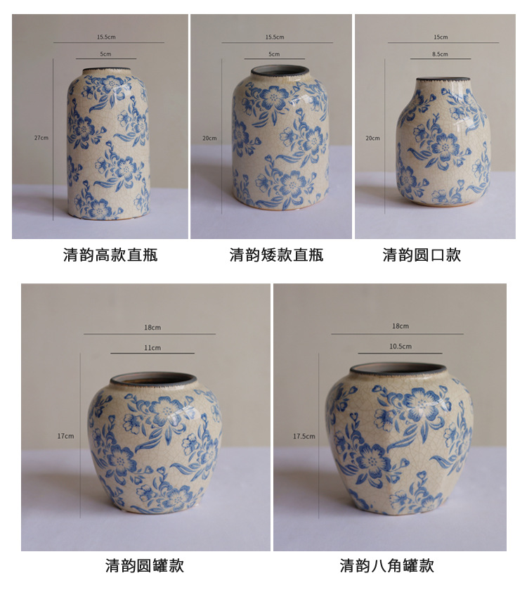 파란색과 흰색 도자기 꽃병 세라믹 고급 감각 프랑스 국가 빈티지 꽃병 세라믹 드레스 크래킹 된 꽃병 수경스토어 가기