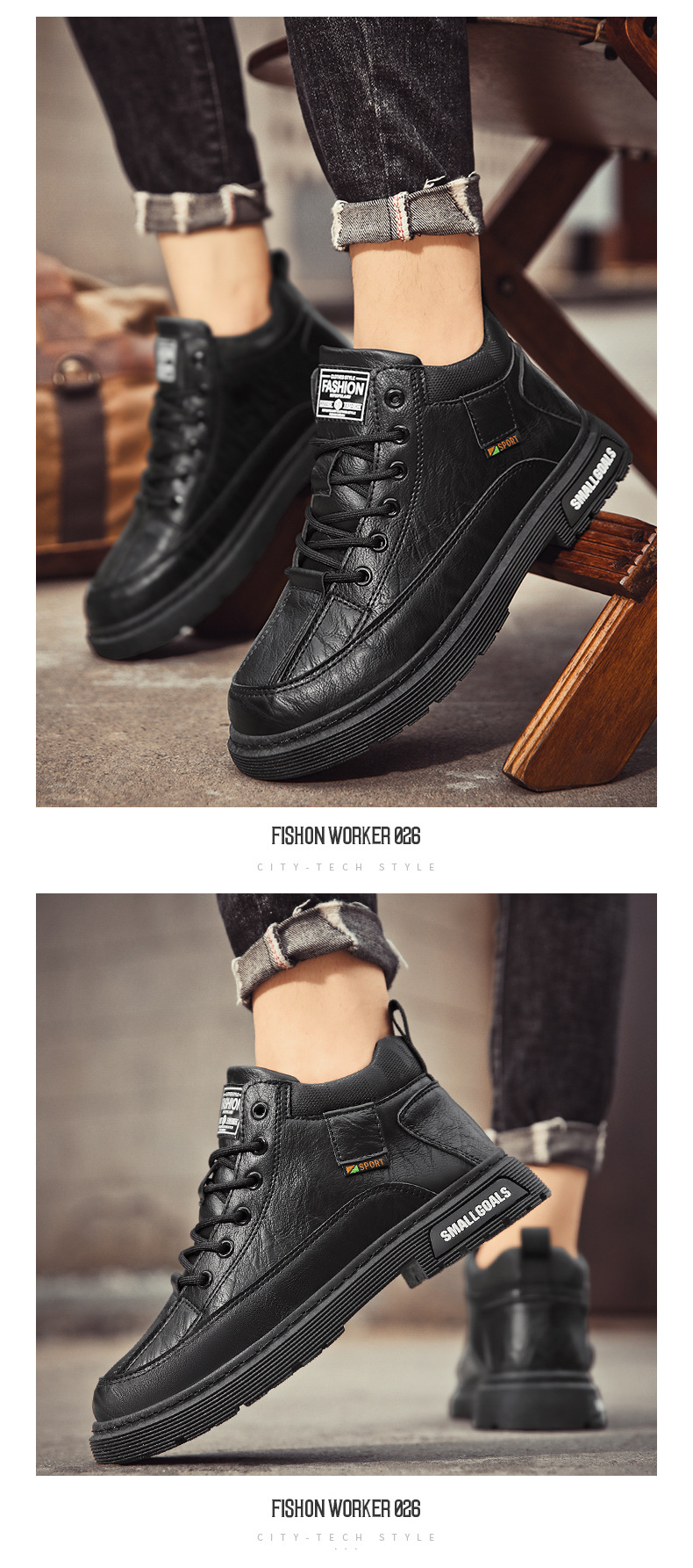 남자의 미드 하이 탑 툴링 부츠 가을 새로운 방수 영국 스타일 두꺼운 단독 증가 운동화 마틴 남성 부츠스토어 가기
