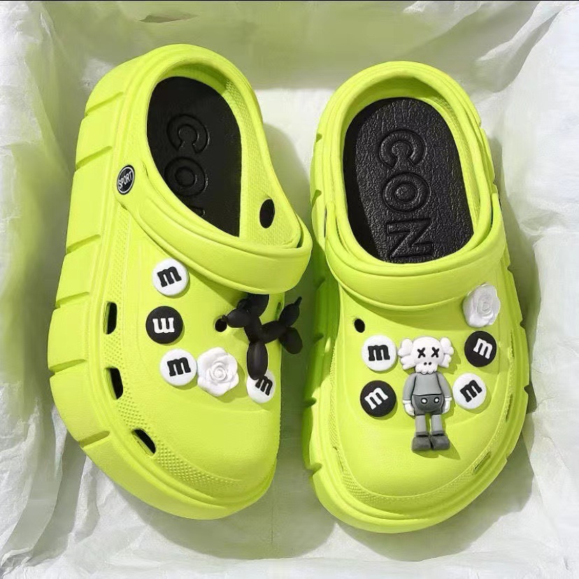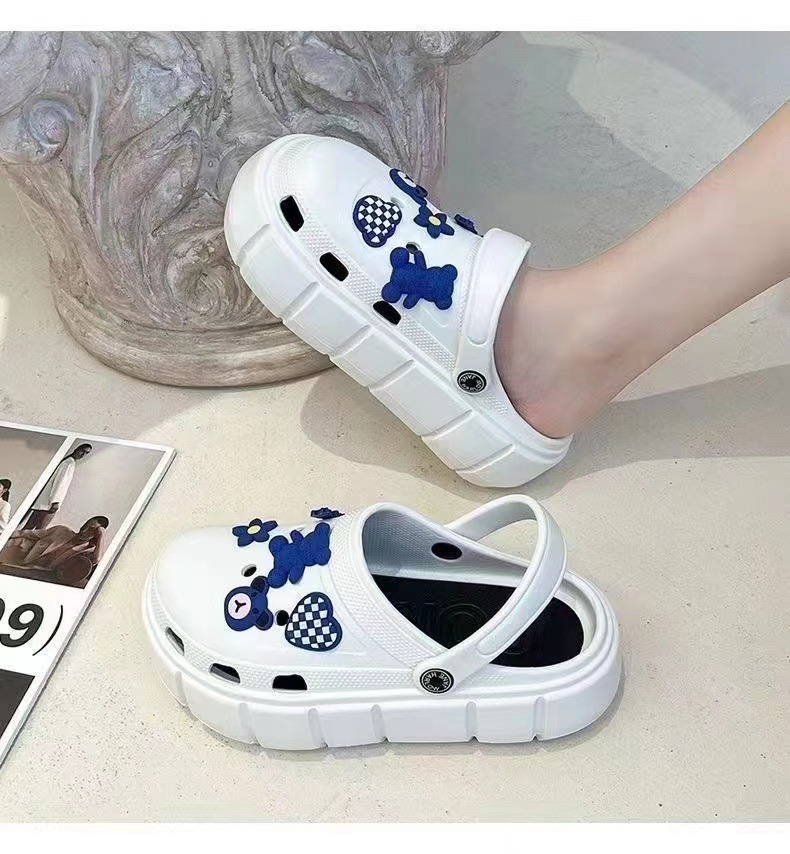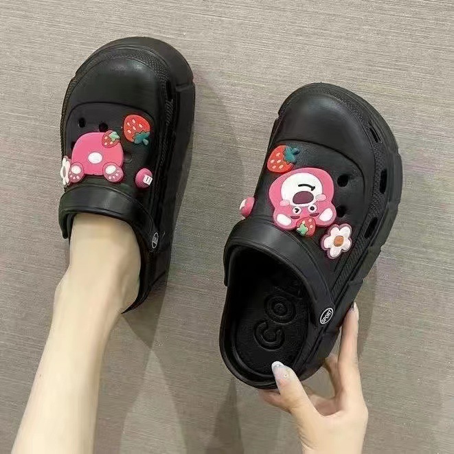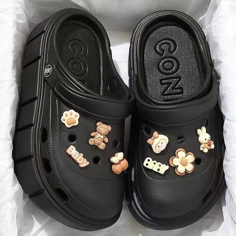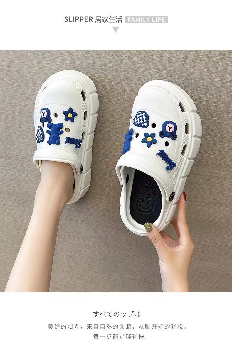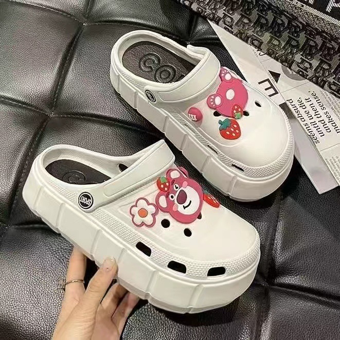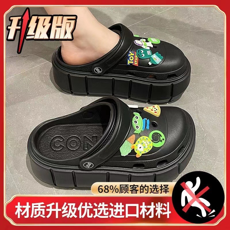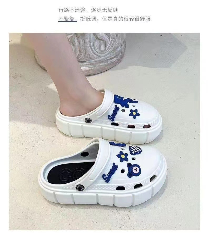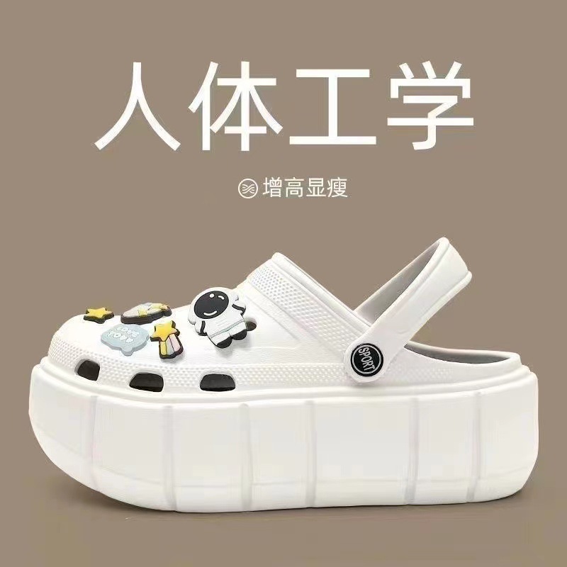 2023 하이 스트리트 두꺼운 밑창 높이 구멍 신발 여성의 여름 야외 인터넷 인기 유행 미끄럼 방지 비치 Baotou 샌들스토어 가기