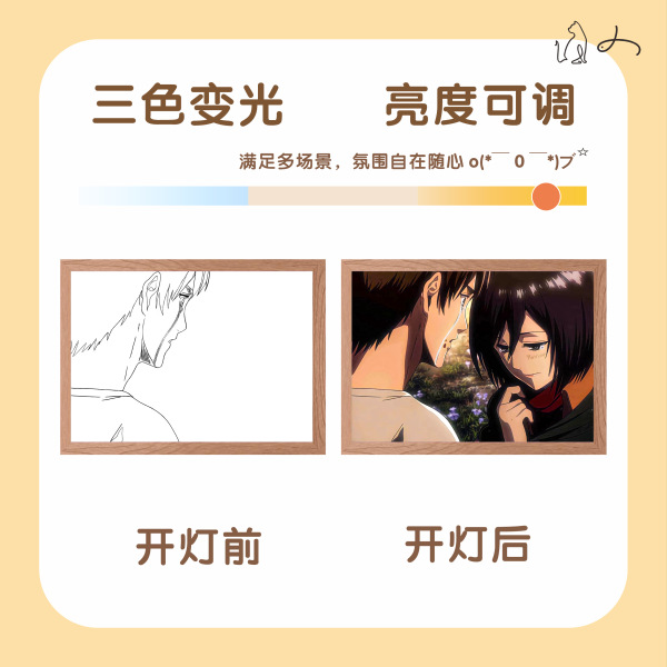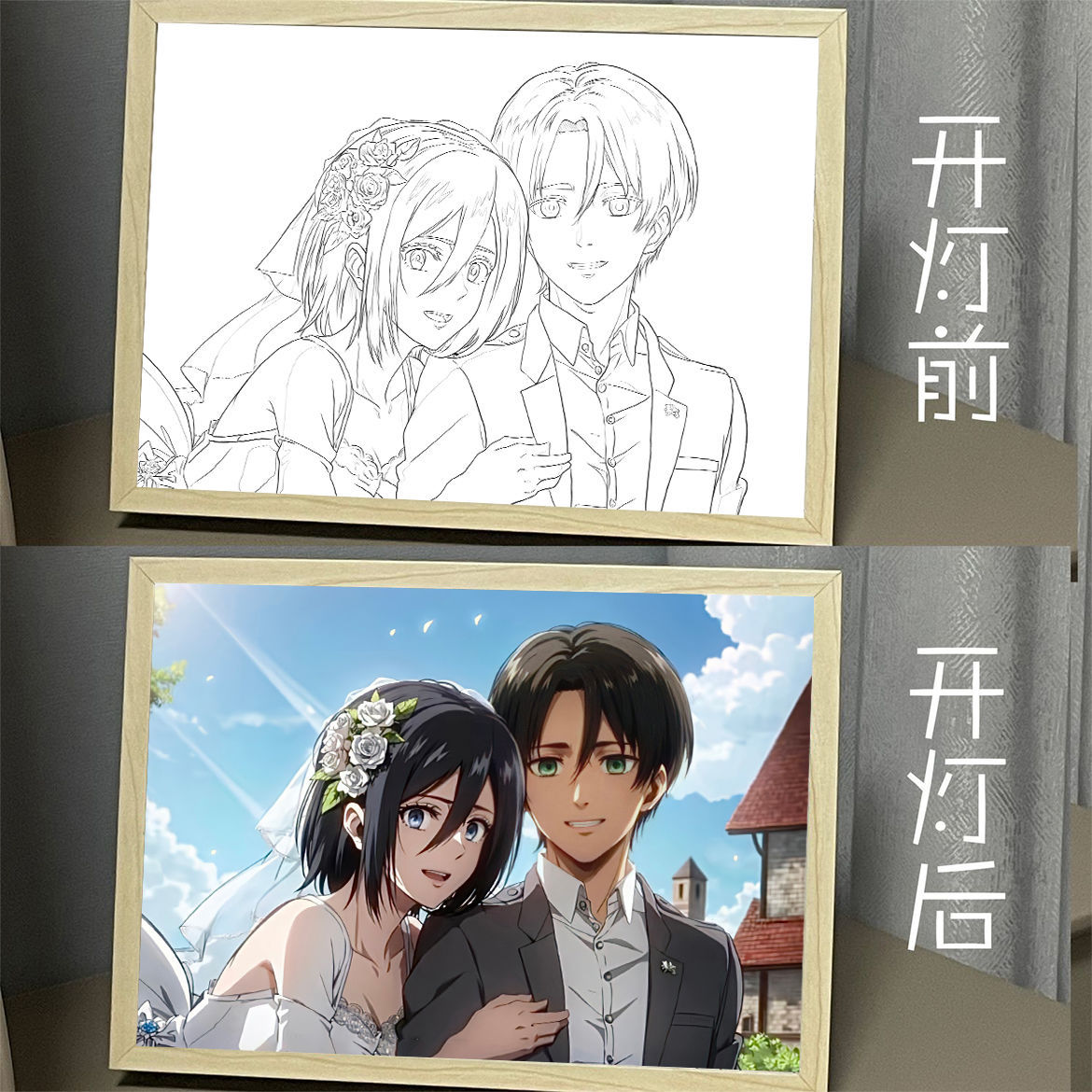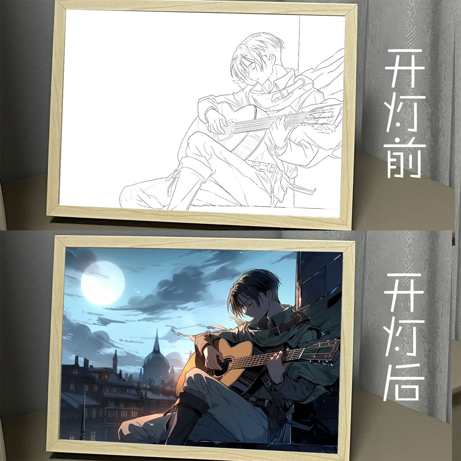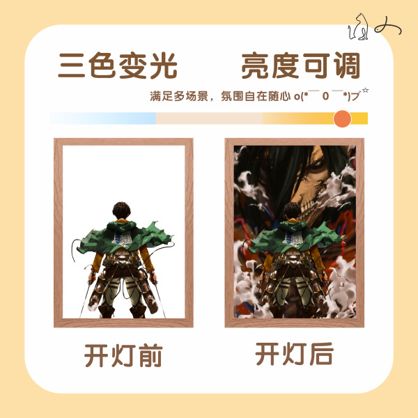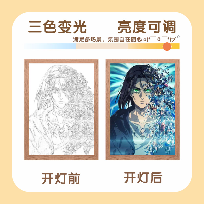 【진격의 거인】 장식 그림 거실 침실 장식품 액자 조명 삼색 변광 조명 그림 만화 가정용스토어 가기