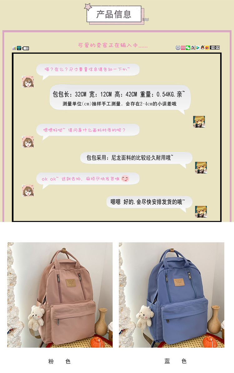 2023 새로운 일본 중학교 학생 책가방 여성 대용량 배낭 간단한 야외 통근 컴퓨터 배낭스토어 가기