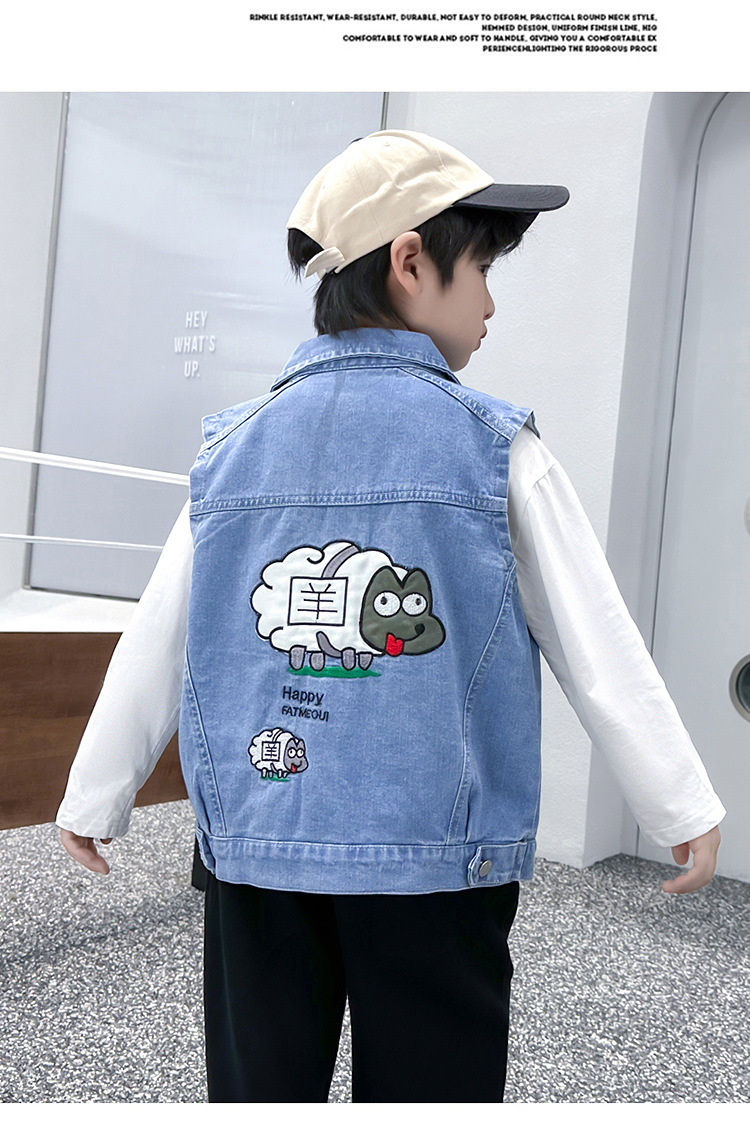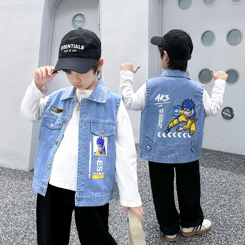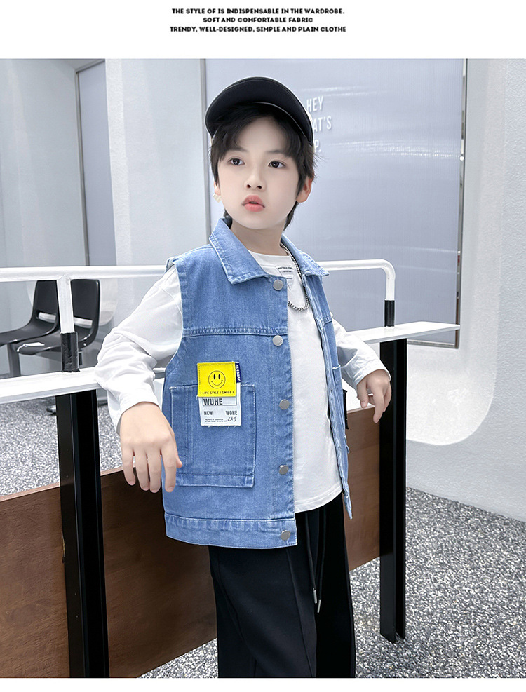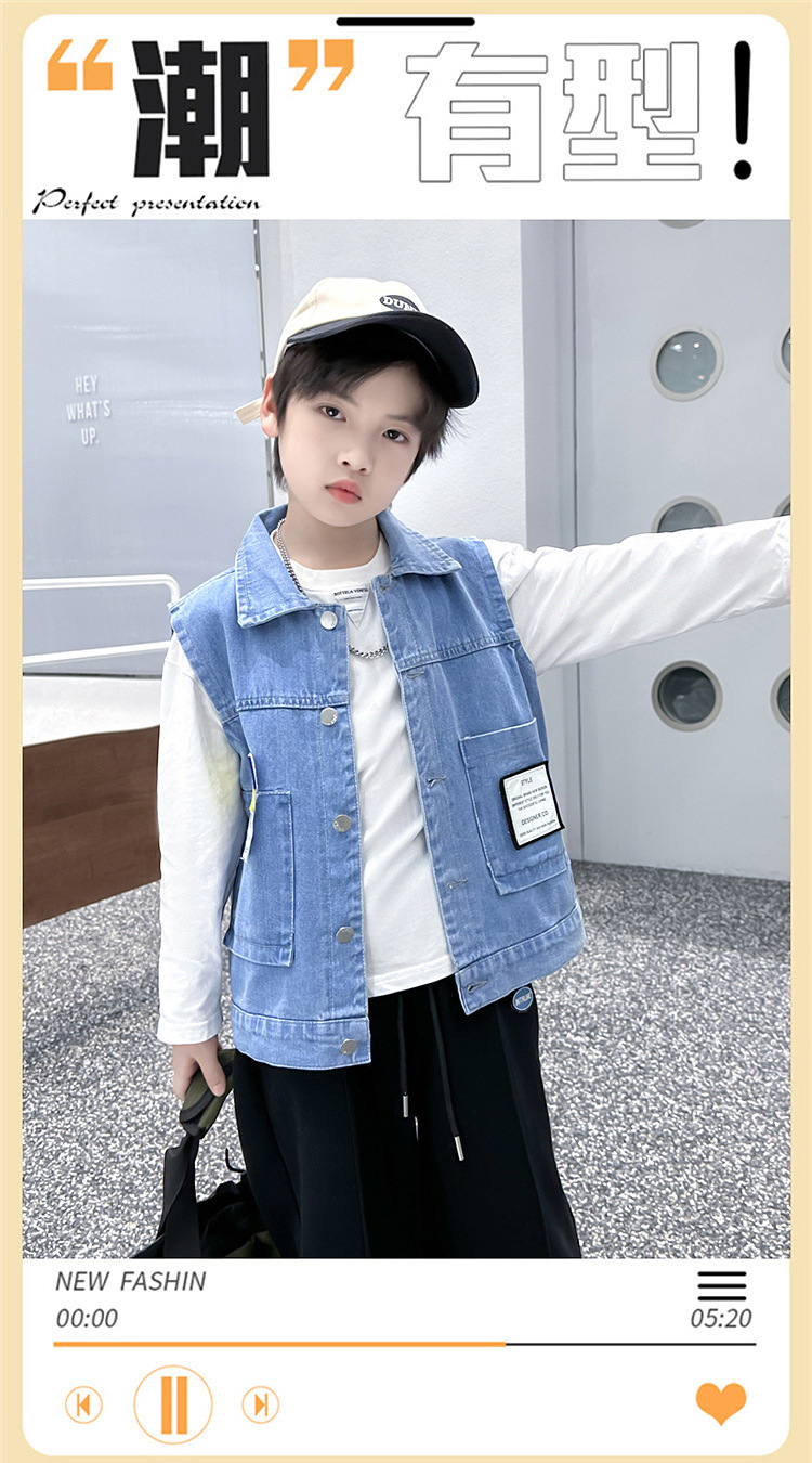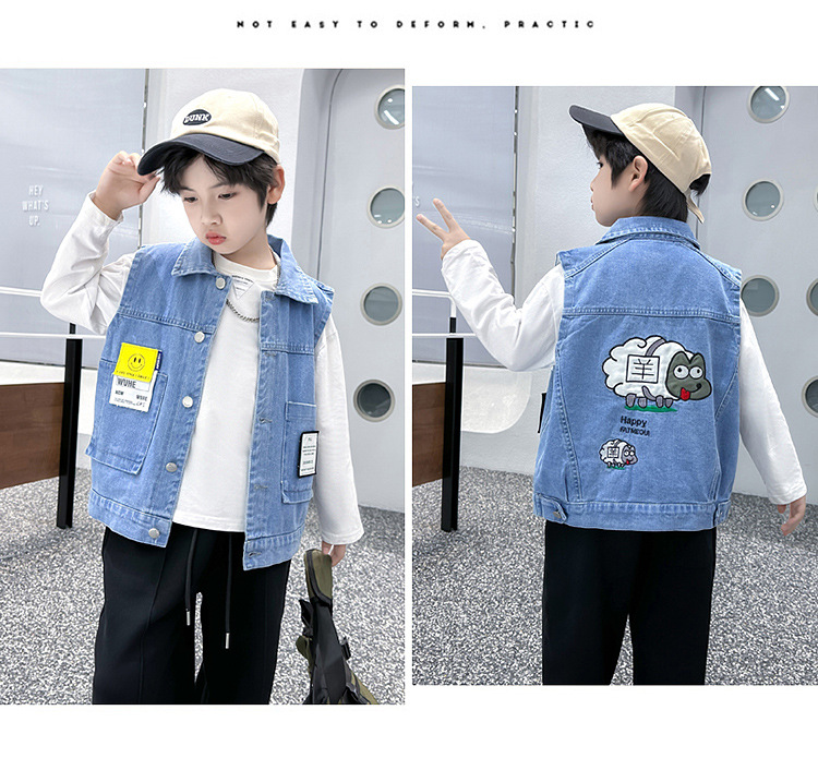 소년 카우보이 조끼 2024 새로운 중대형 어린이 서양식 외부 조끼 착용 조끼 봄 가을 어린이 조끼 유행스토어 가기
