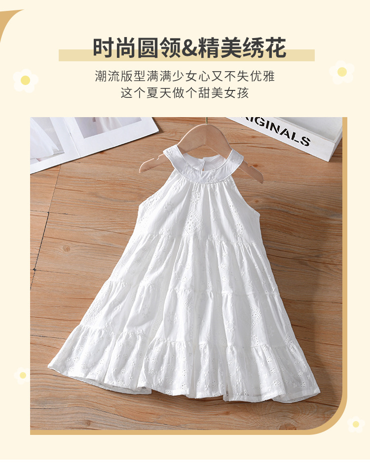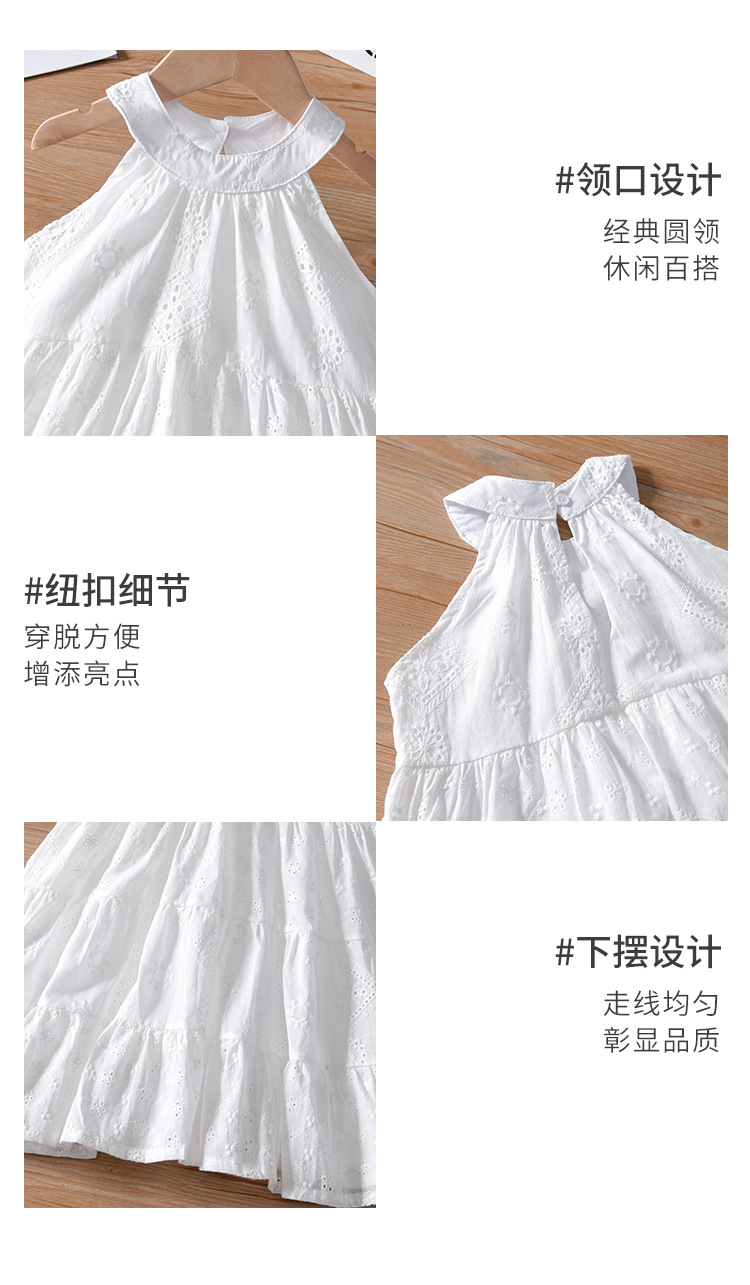 여자 고삐 드레스 여름 새로운 어린이 순수한 흰색 레이스 수 놓은 서스펜더 공주 드레스 대외 무역 도매스토어 가기