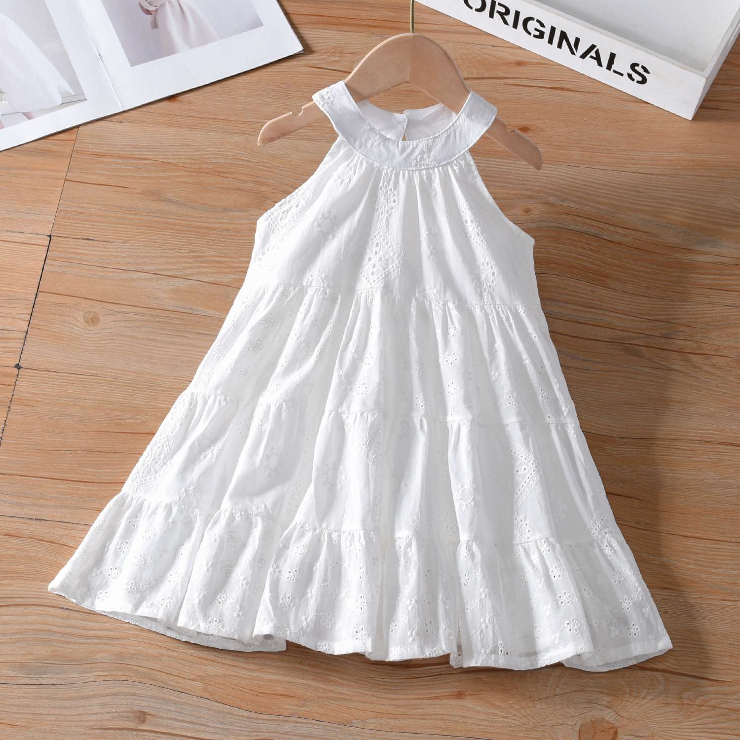여자 고삐 드레스 여름 새로운 어린이 순수한 흰색 레이스 수 놓은 서스펜더 공주 드레스 대외 무역 도매