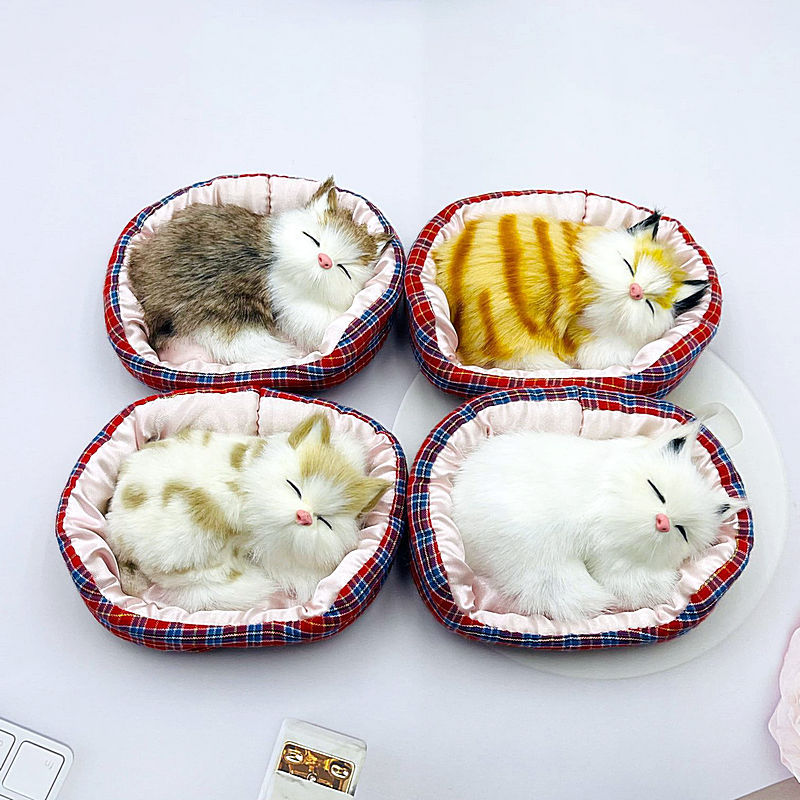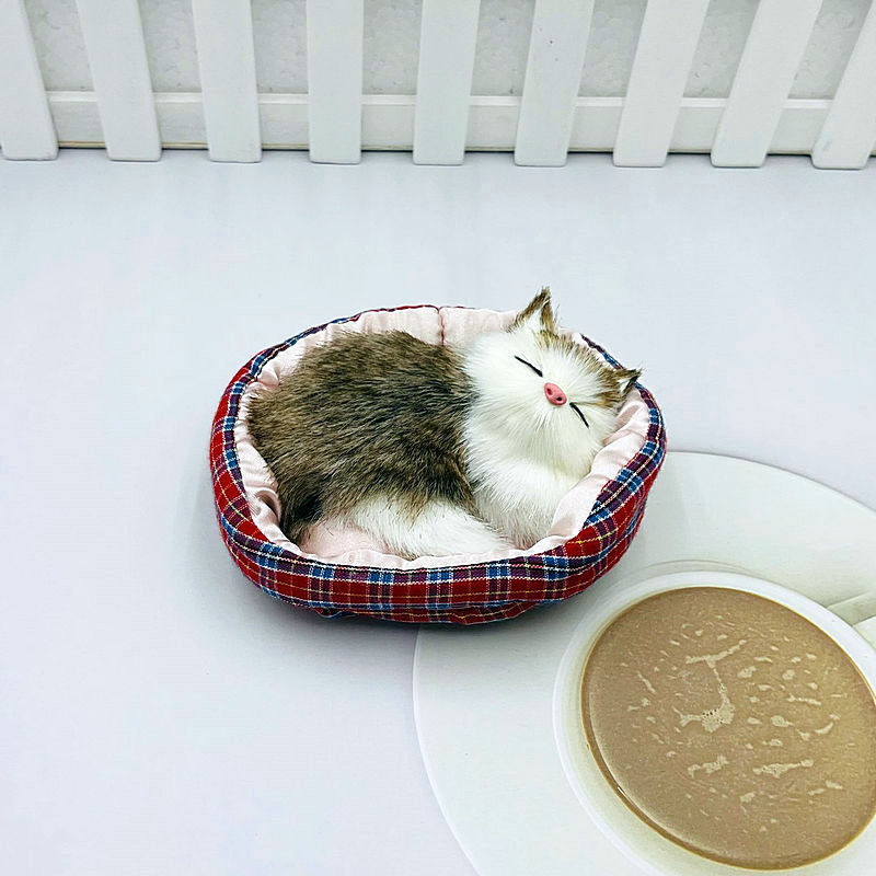 천 패드 시뮬레이션 작은 잠자는 고양이 장식품 고양이 봉제 가구 장식품 천 둥지 고양이 자동차 모델 장식품