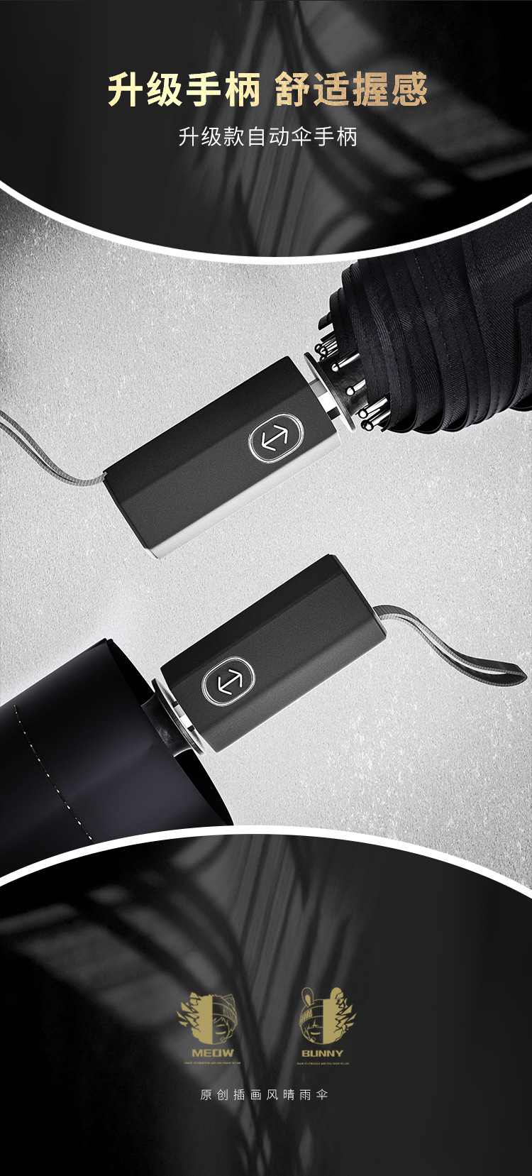 원래 일러스트 써니 우산 하이 컬러 가치 빛 럭셔리 수동 접는 우산 블랙 고무 자외선 차단제 차양 우산 도매 어린이를위한