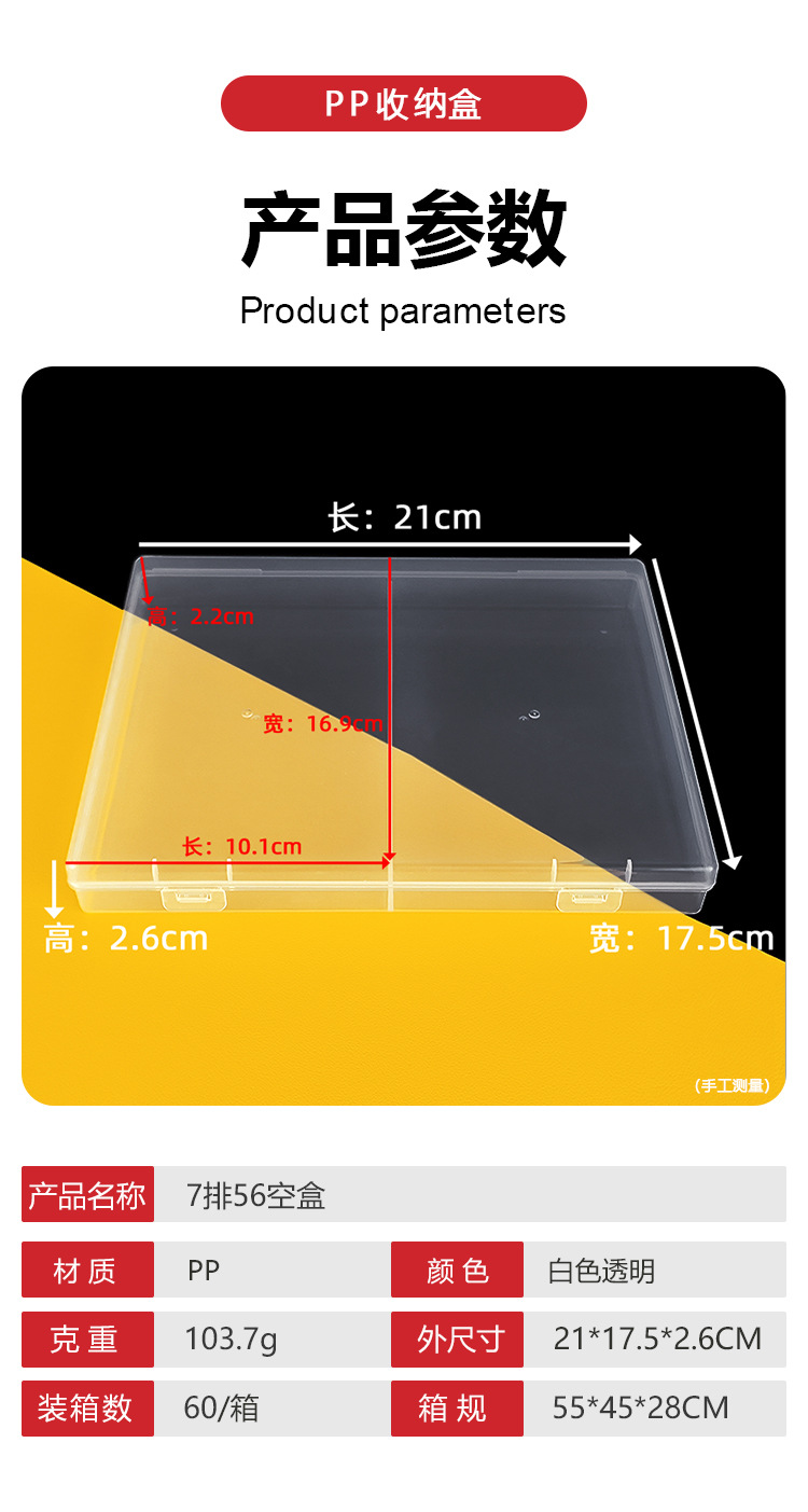 • 56 개의 빈 상자 7 개 21*17.5*2.6cm; 투명; 저장 상자