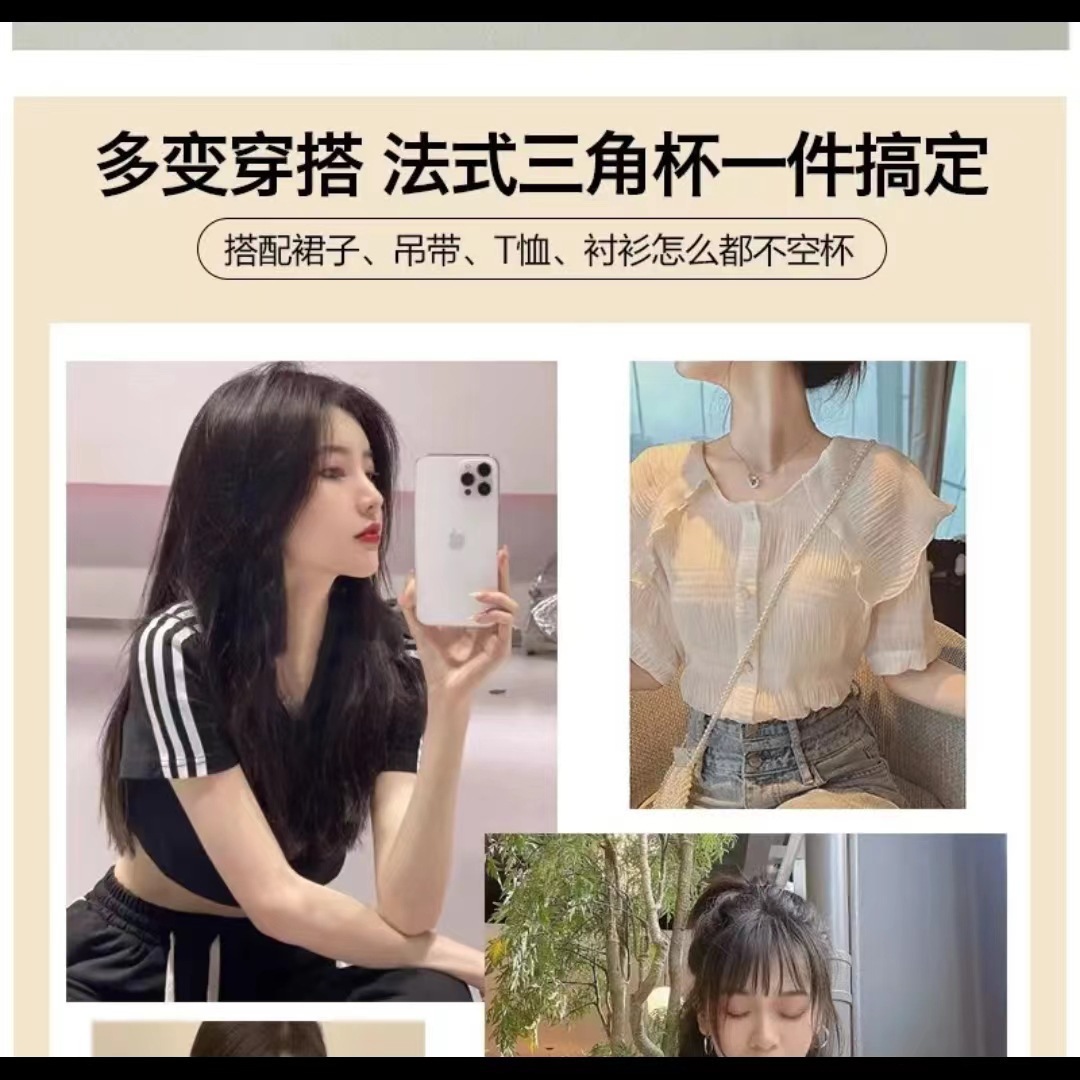 프랑스 스타일 삼각형 컵 속옷 여성 소녀의 강철 반지 얇은 순면 피부 친화적 인 모임 아름다운 백 봉투 편지 브래지어