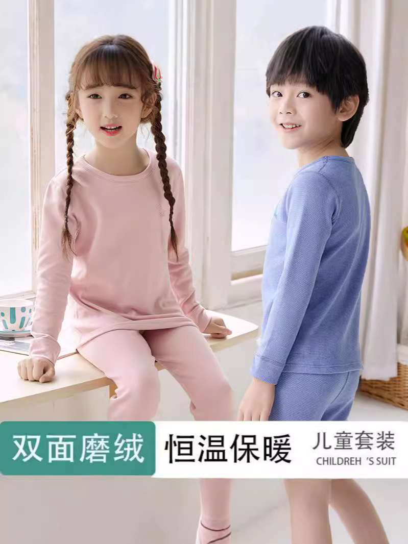 어린이 울 실크 세트 가을과 겨울 일정한 온도 열 속옷 더블 샌딩 남아 여아 아기의 가을 옷과 바지