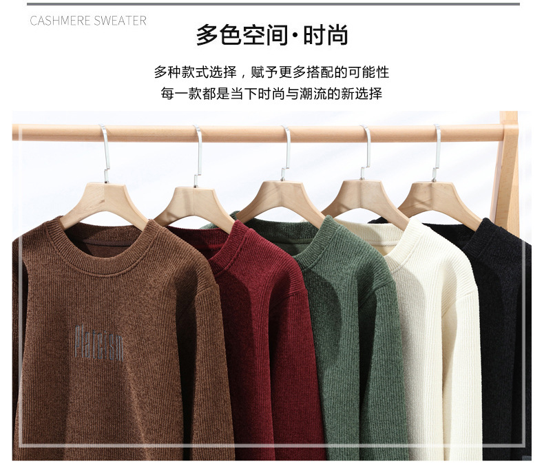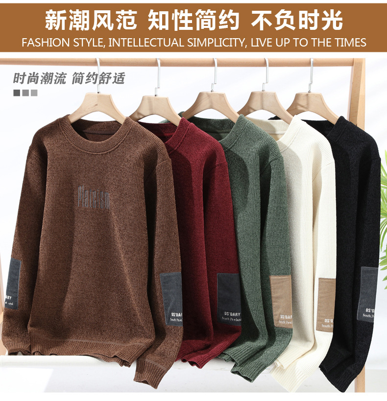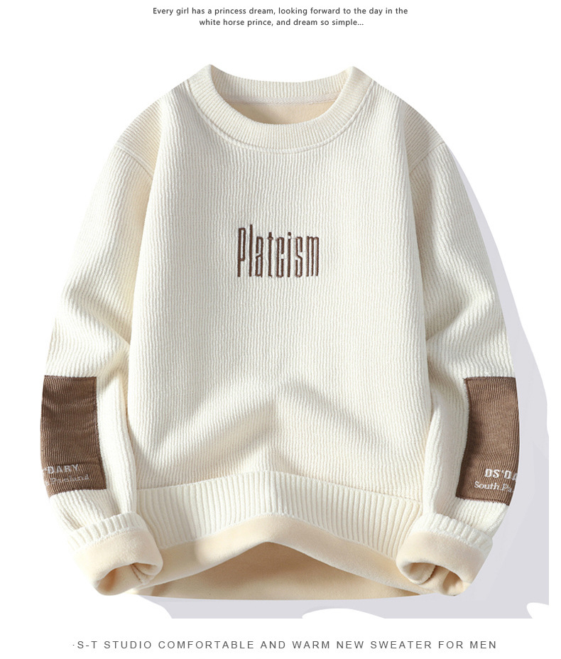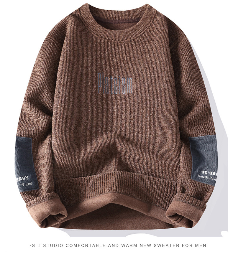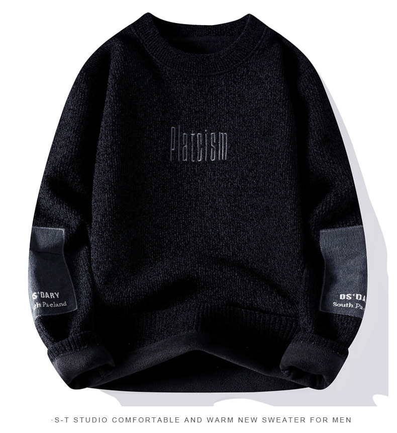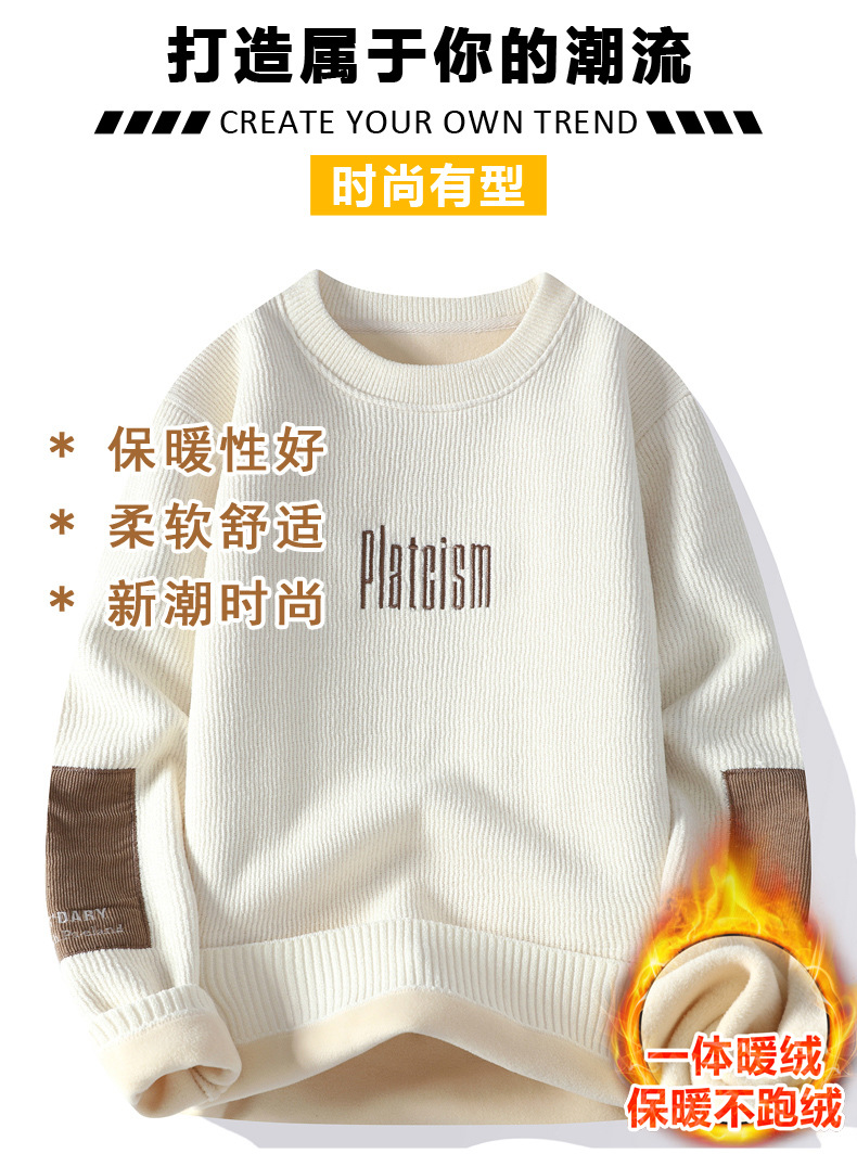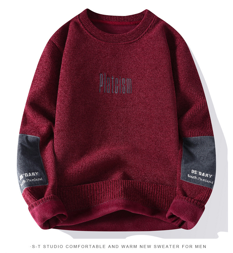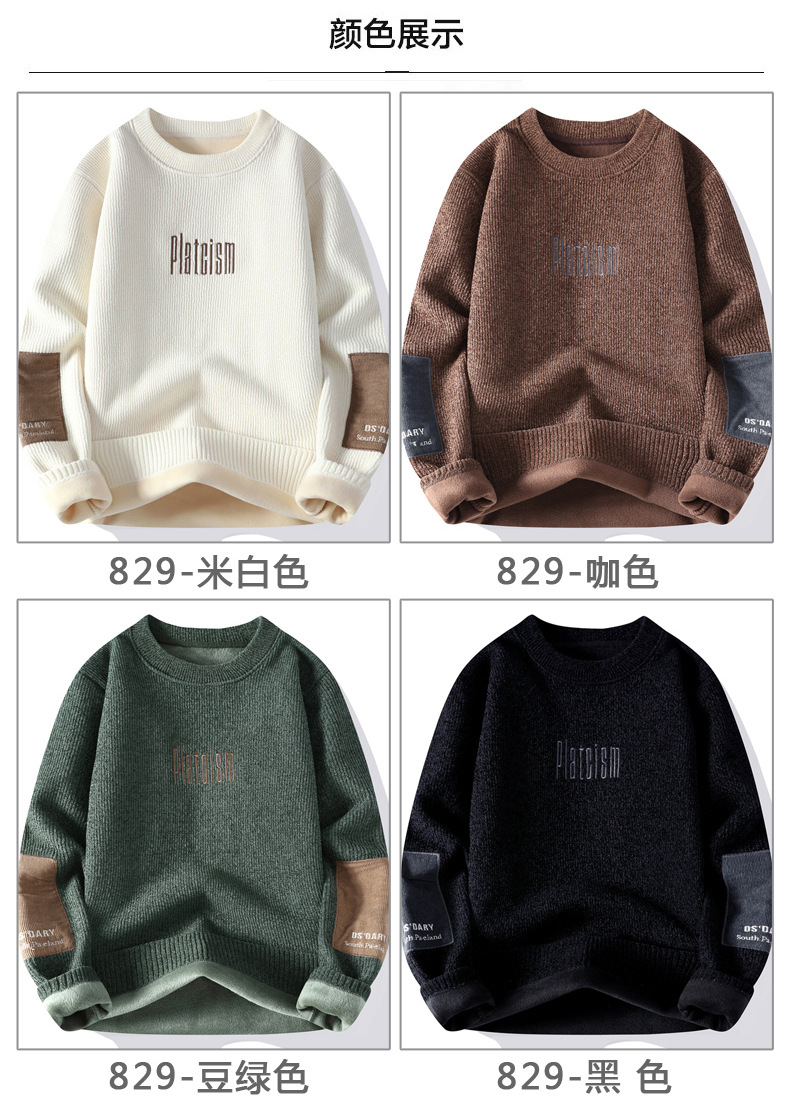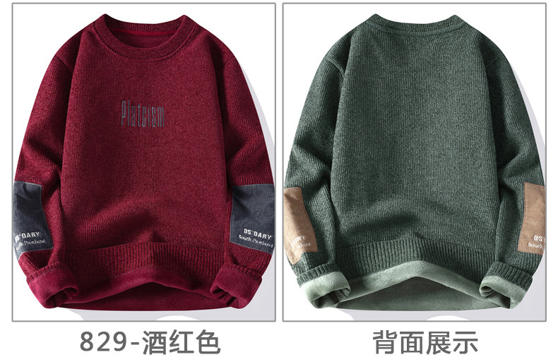 대외 무역 남자의 긴 소매 색상 일치 라운드 넥 기모 두꺼운 풀오버 유행 청소년 남자의 따뜻한 스웨터스토어 가기