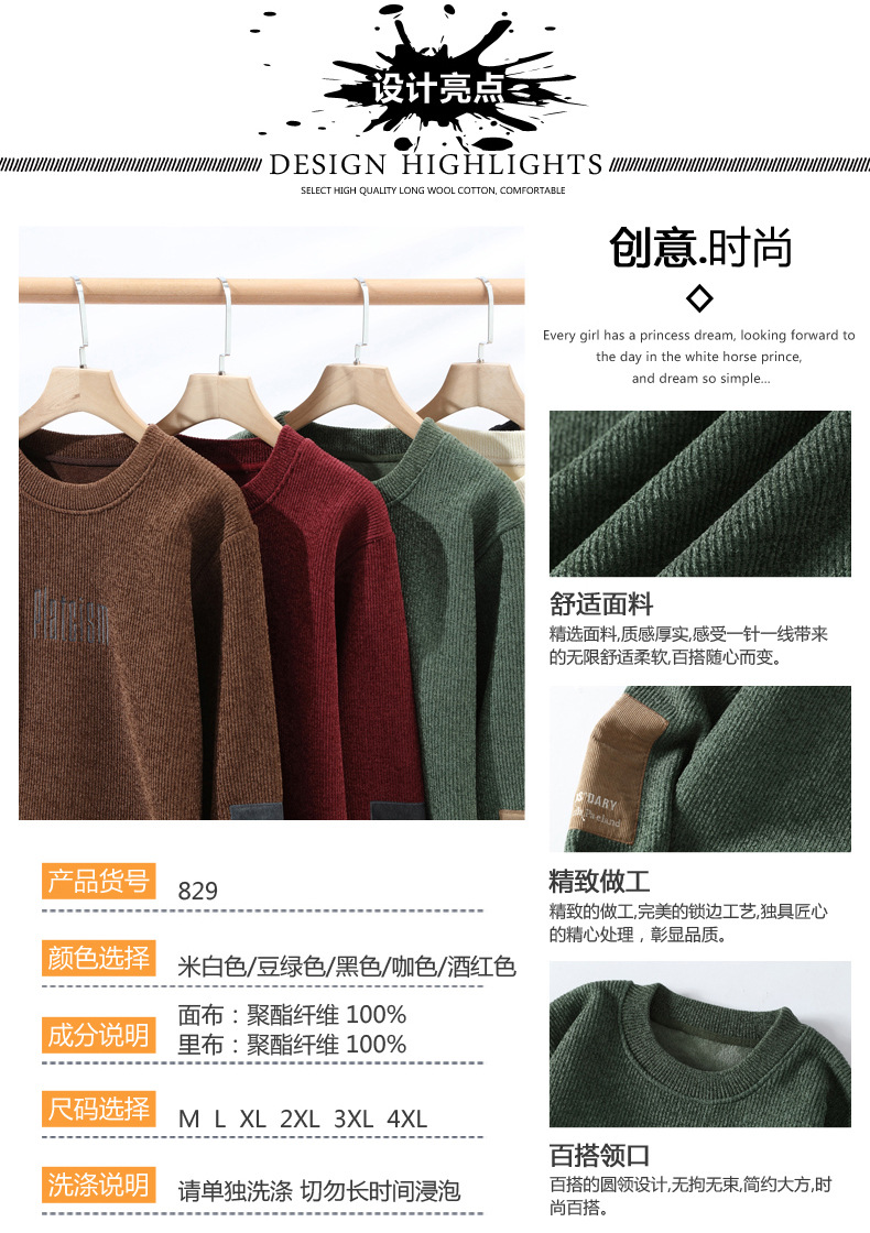 대외 무역 남자의 긴 소매 색상 일치 라운드 넥 기모 두꺼운 풀오버 유행 청소년 남자의 따뜻한 스웨터