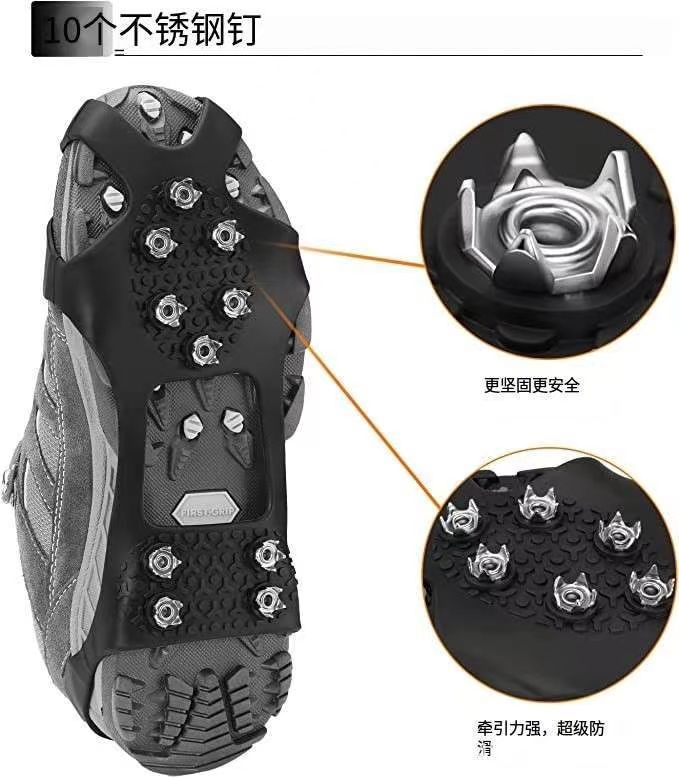 야외 열 손톱 10 이빨 강철 손톱 얼음 발톱 등산 여행 낚시 눈 미끄럼 방지 신발 커버 스테인레스 스틸 얼음과 눈 손톱 실리콘