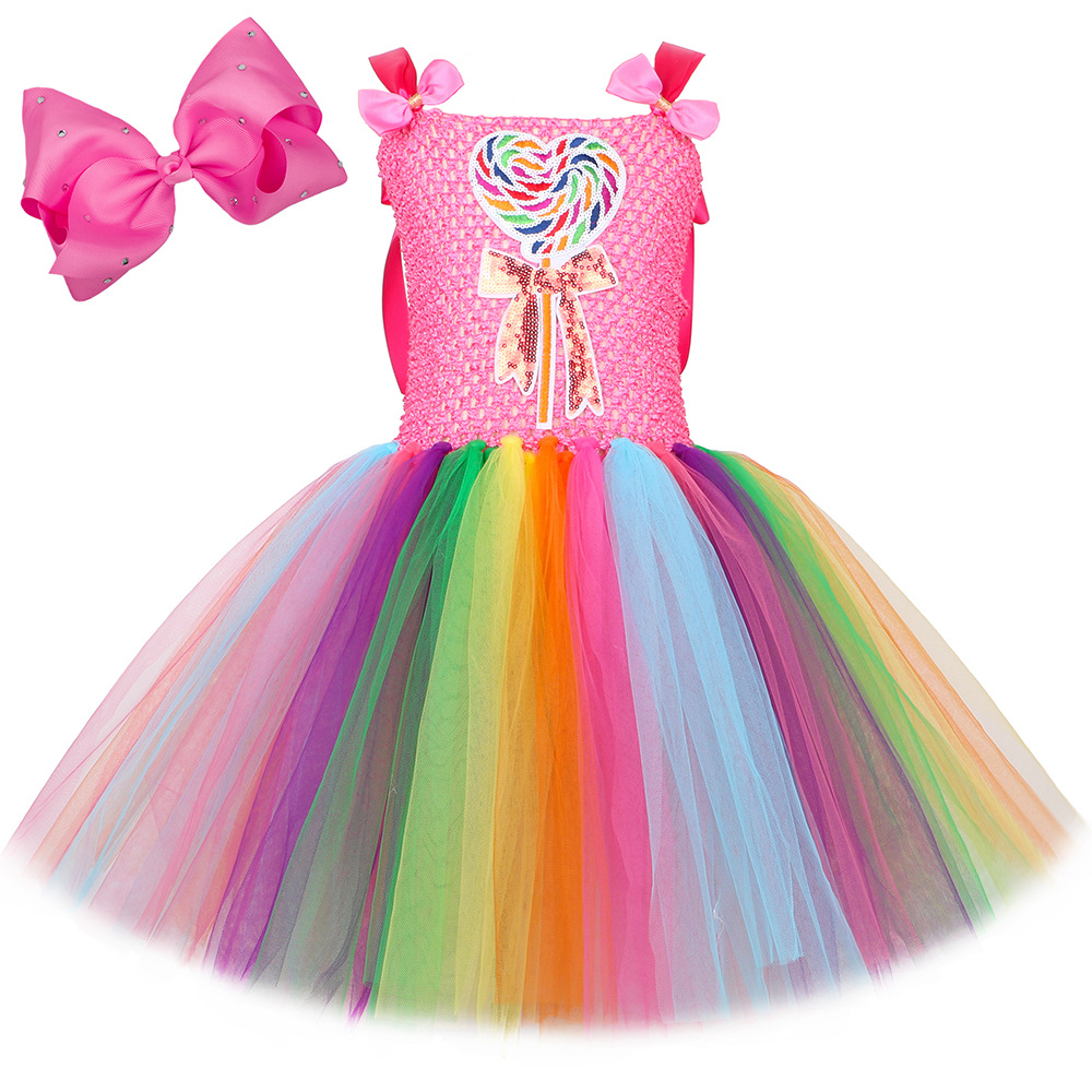 어린이 롤리팝 원피스 무지개 사탕 메쉬 투투 원피스 소녀 축제 공연 의상 공주 퍼프 원피스
