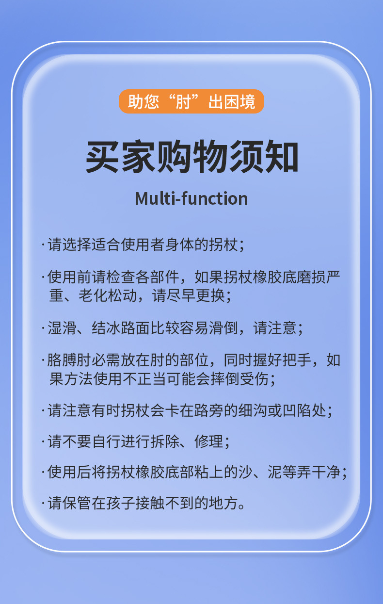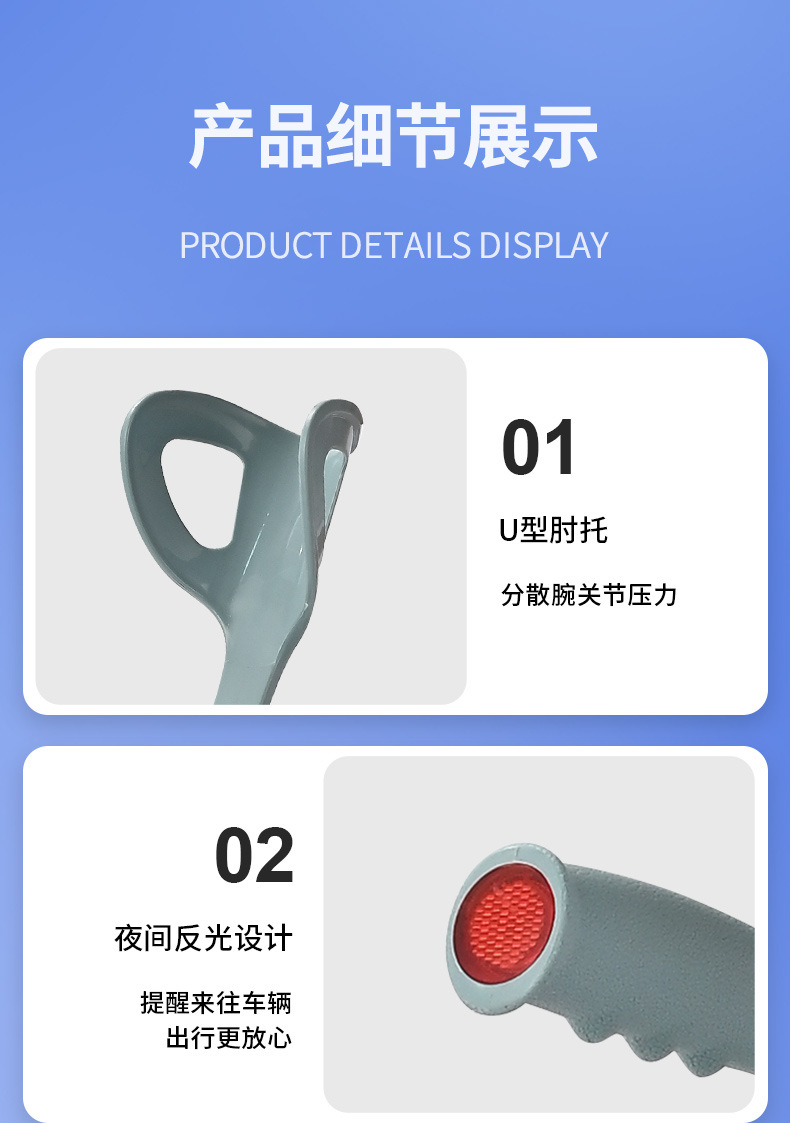 젊은층의 골절재활을 위한 양팔형 지팡이, 의료용 겨드랑이 지팡이, 팔꿈치 지팡이, 여성용 경량 미끄럼 방지 고무 커버스토어 가기