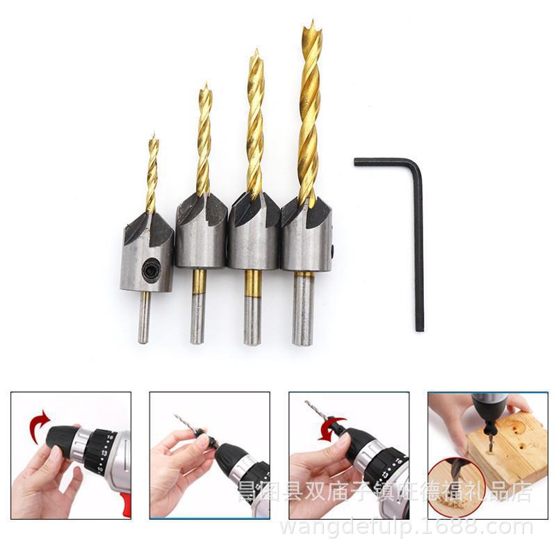 3 점 목공 카운터 싱크 드릴 티타늄 도금 천연 모따기 장치 위치 지정 드릴링 구멍 리밍 라운드 생크 트위스트 드릴스토어 가기