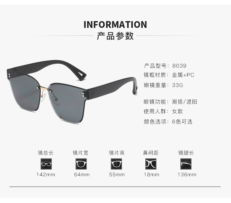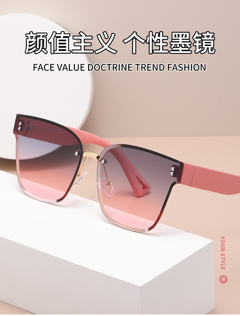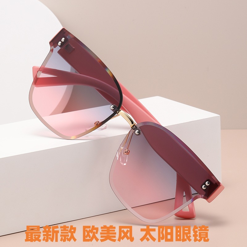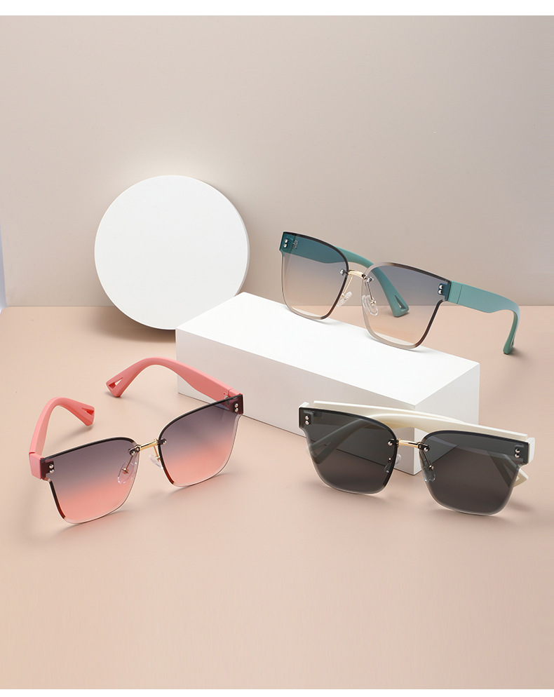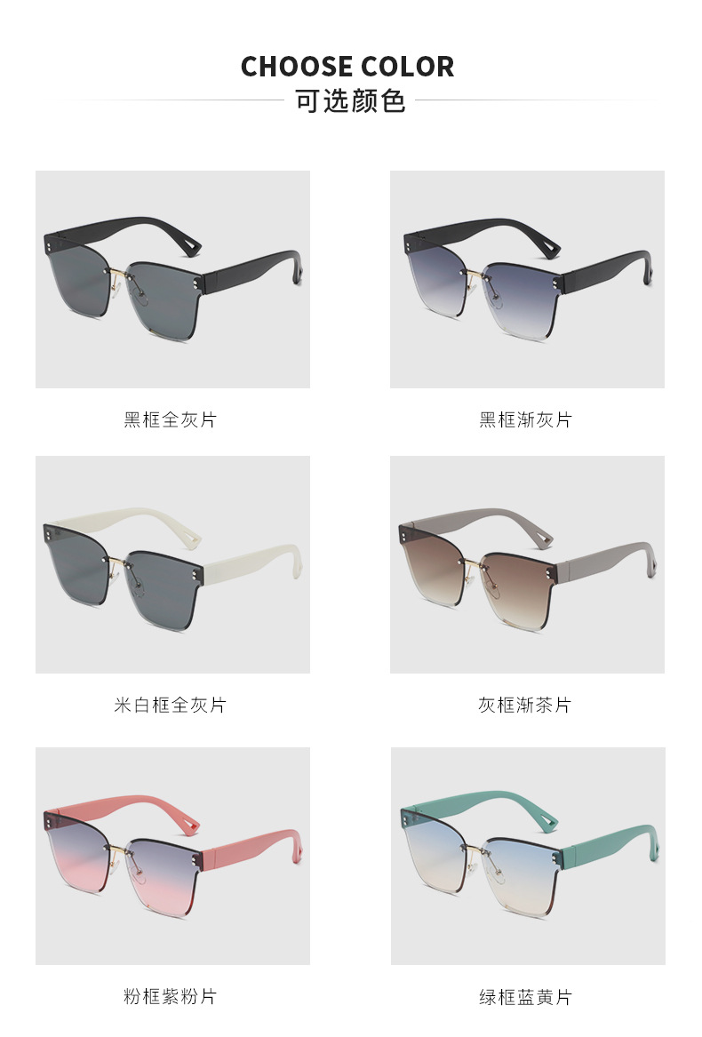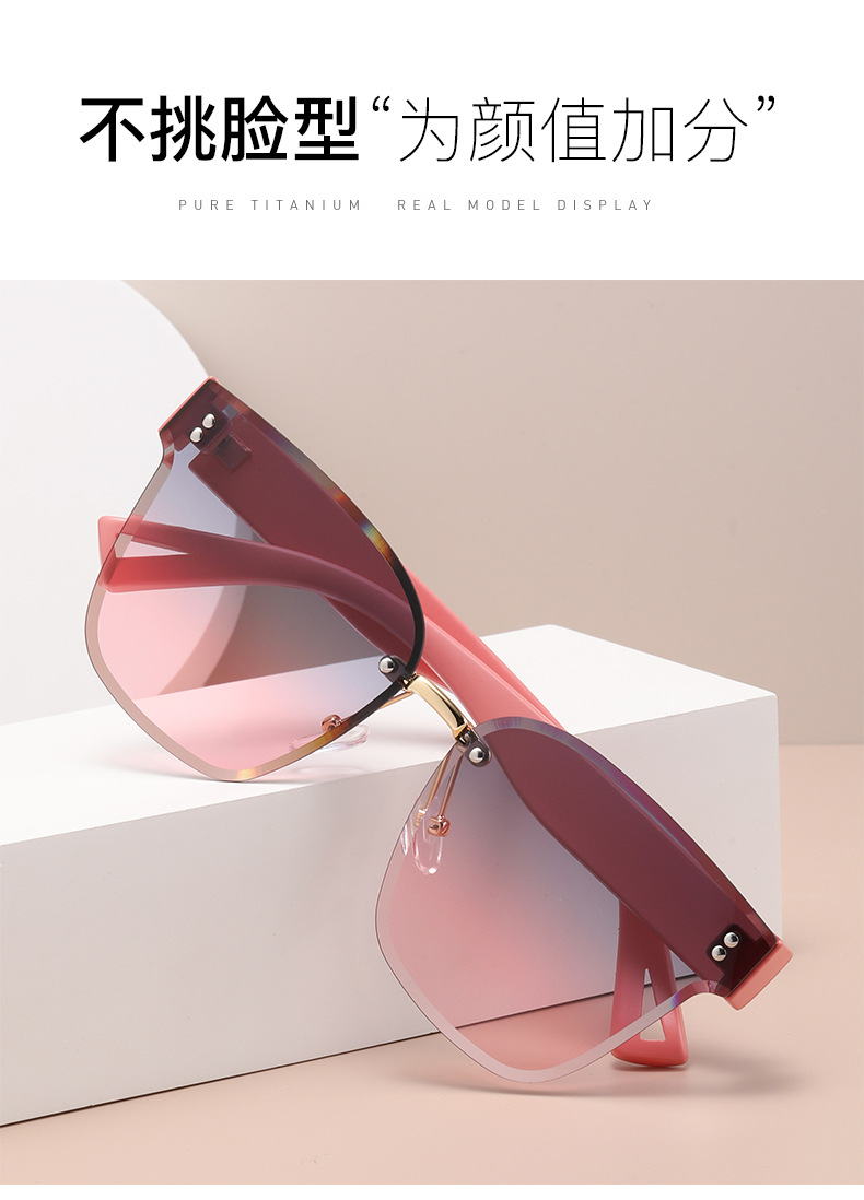 컬러풀한 레트로 스타일의 대형 프레임 선글라스, 인터넷 셀럽들이 입는 인기 상품, 여성용, 운전용, 무테, 슬림한 효과, 노메이크업 선글라스