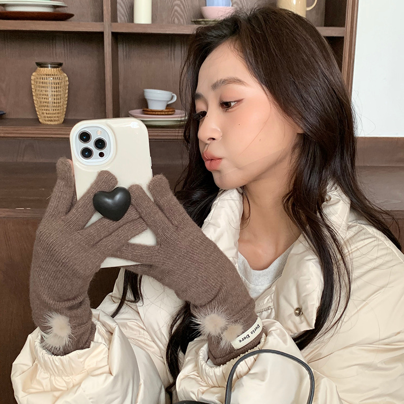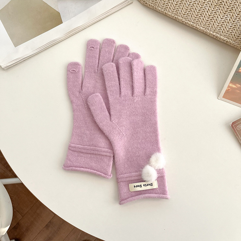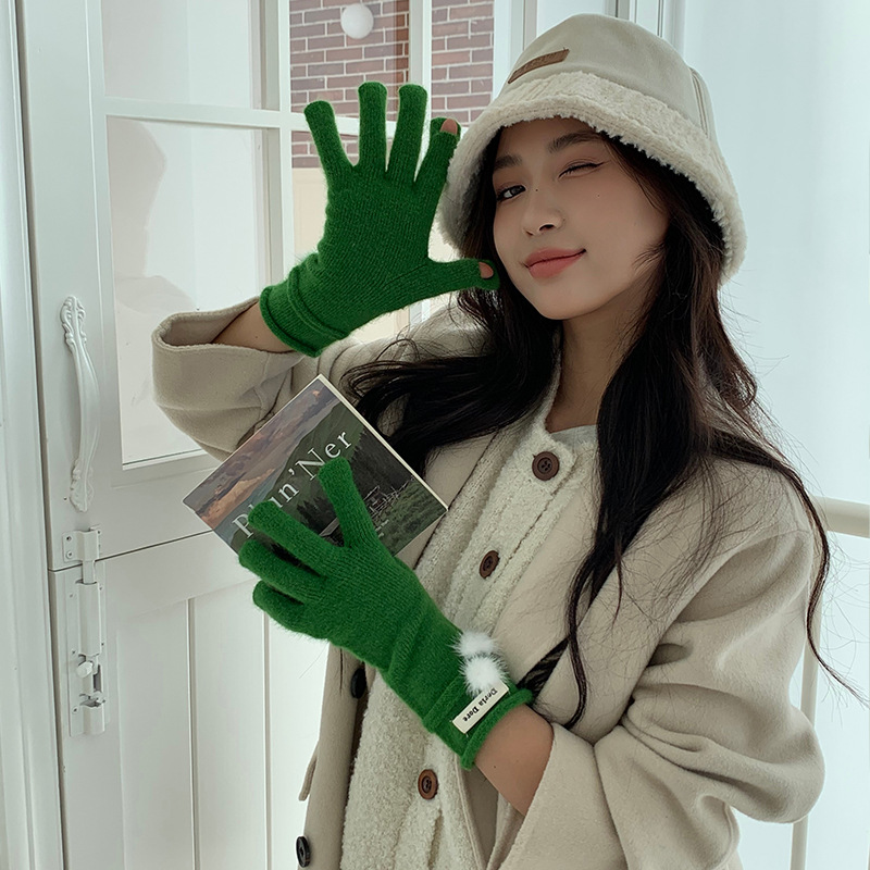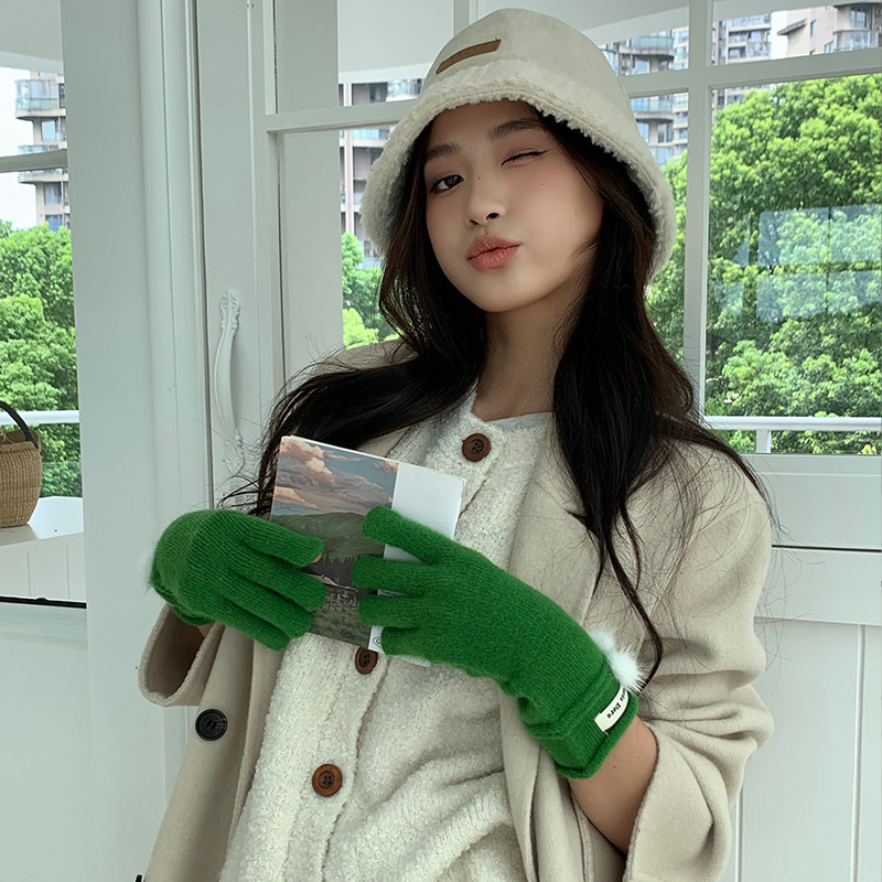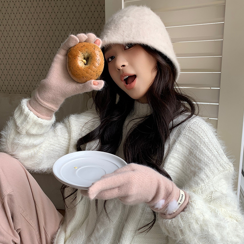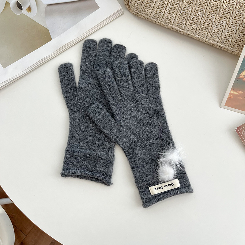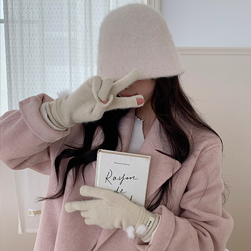캐주얼 패션 모든 매치 따뜻한 모피 볼 장갑 겨울 방한 봉제 독특한 단색 편지 인쇄 직조 장갑