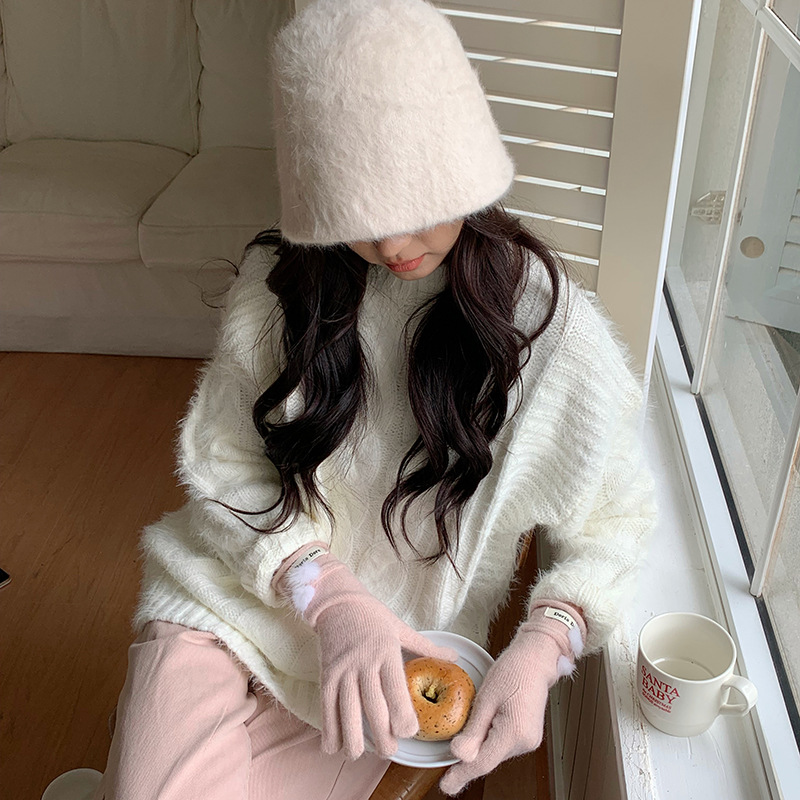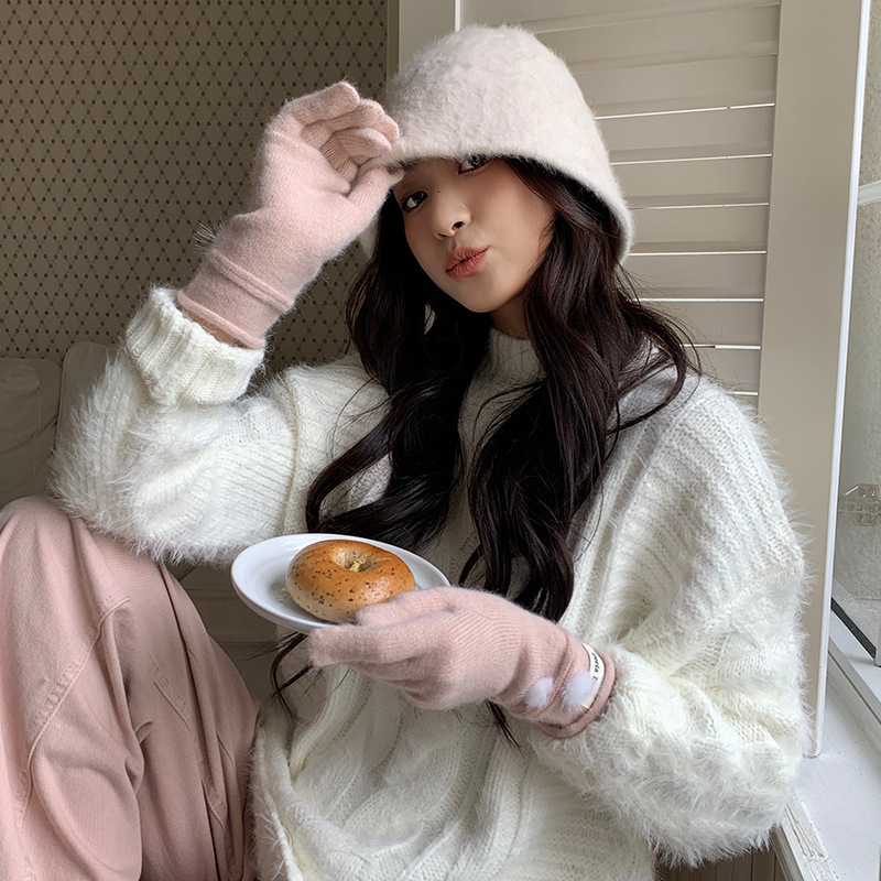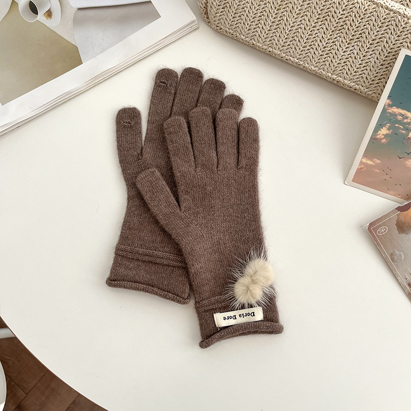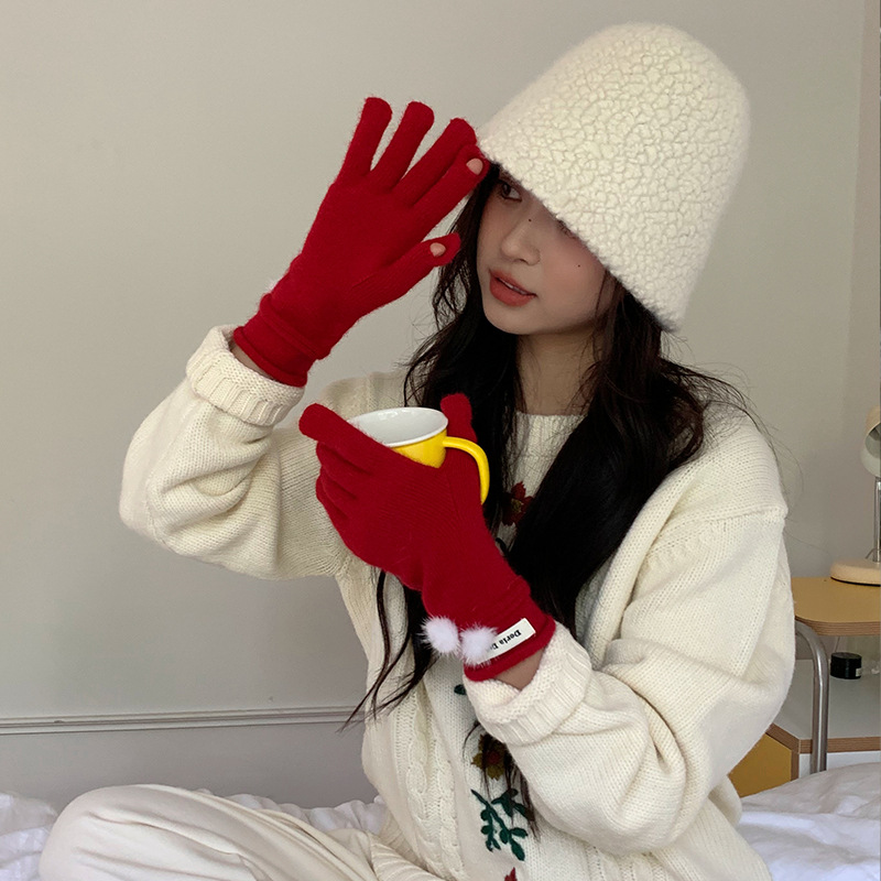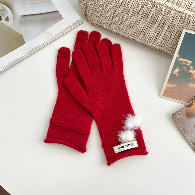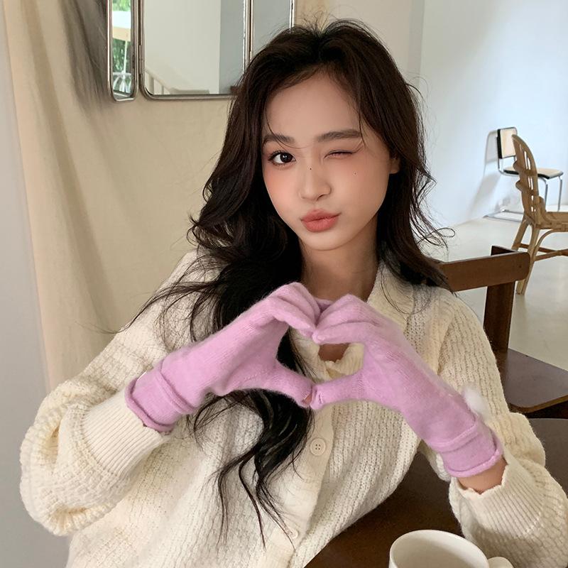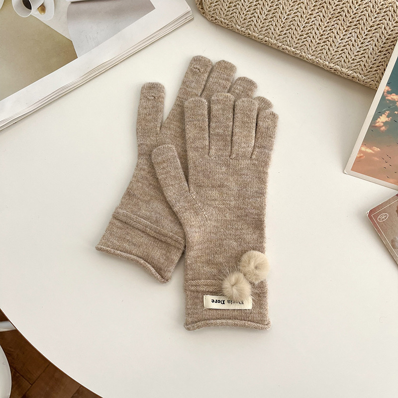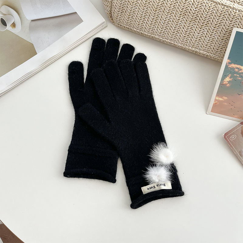 캐주얼 패션 모든 매치 따뜻한 모피 볼 장갑 겨울 방한 봉제 독특한 단색 편지 인쇄 직조 장갑