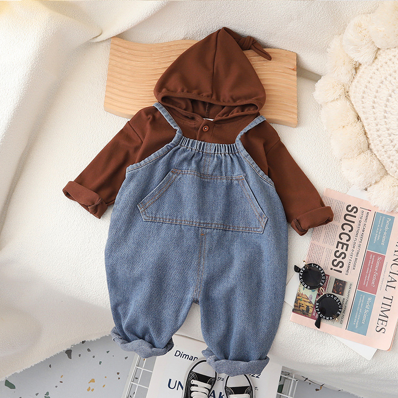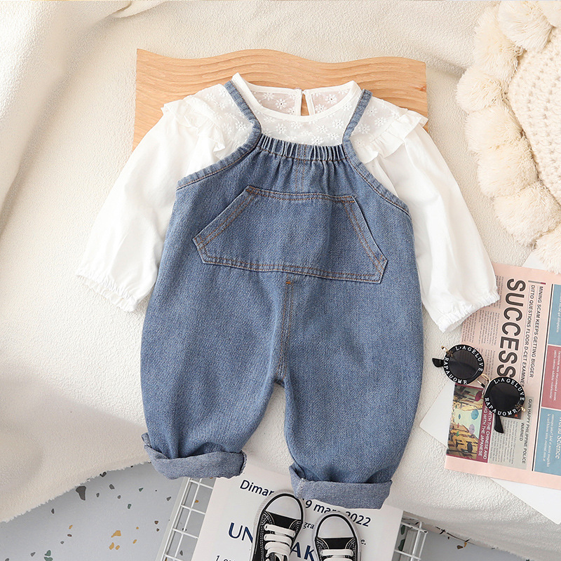 儿童背带裤春秋款2023新款男女宝宝韩版秋季软牛仔背带裤网红款