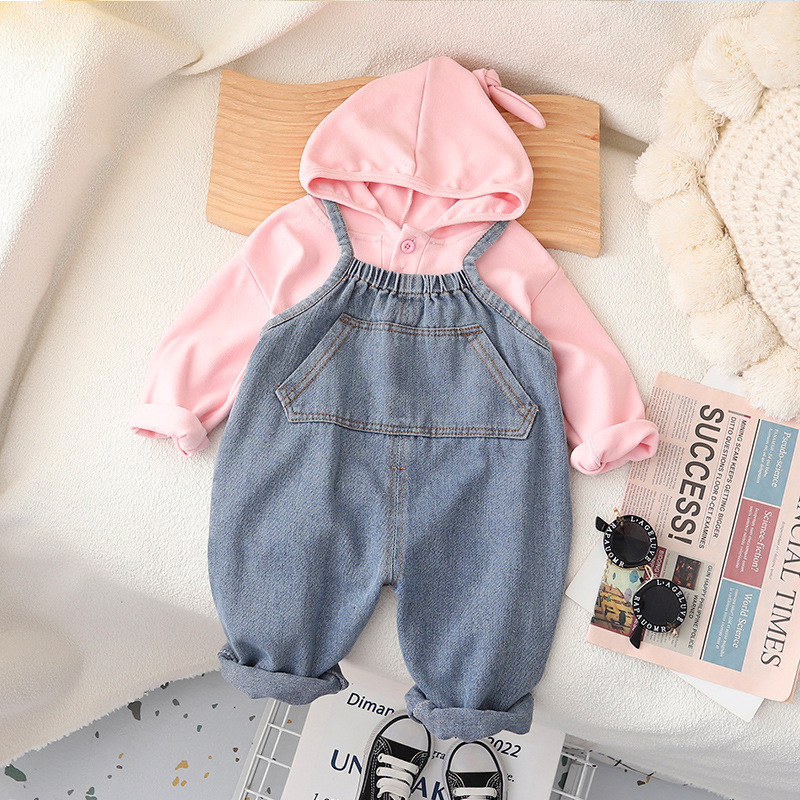 어린이 스트랩 바지 봄과 가을 2023 새로운 소년과 소녀 아기 한국 가을 부드러운 데님 스트랩 바지 인터넷 연예인스토어 가기