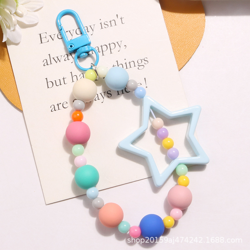새로운 도파민 중공 별 열쇠 고리 펜던트 소형 신선한 컬러 볼 구슬 체인 액세서리 이어폰 커버 장식스토어 가기