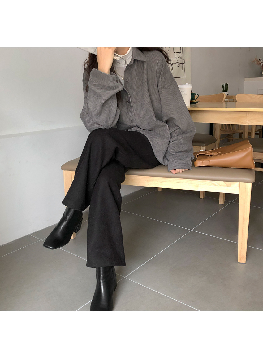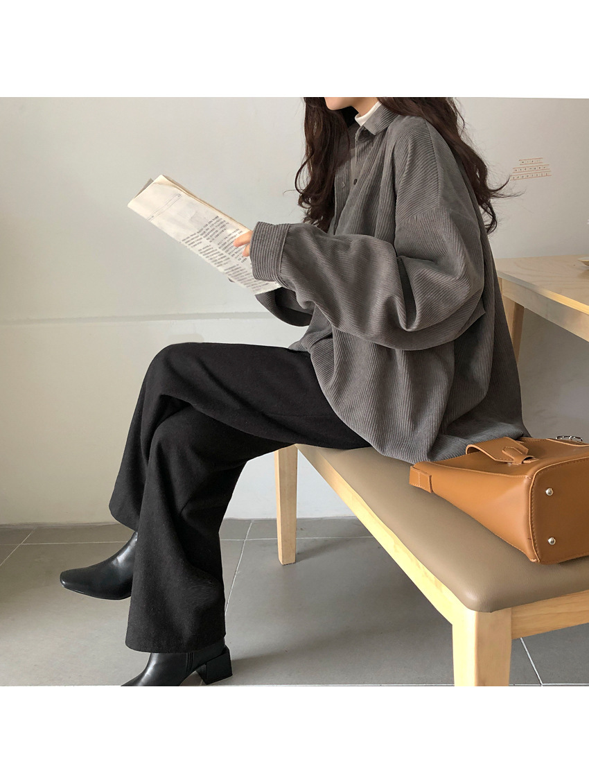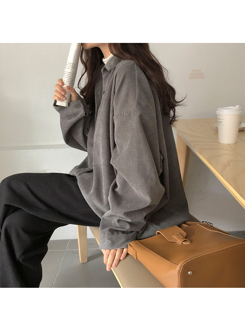 대외 무역 코듀로이 셔츠 여자의 가을 긴팔 느슨한 레이지 탑 중간 길이 셔츠 여자의 겉옷 모든 매치 재킷