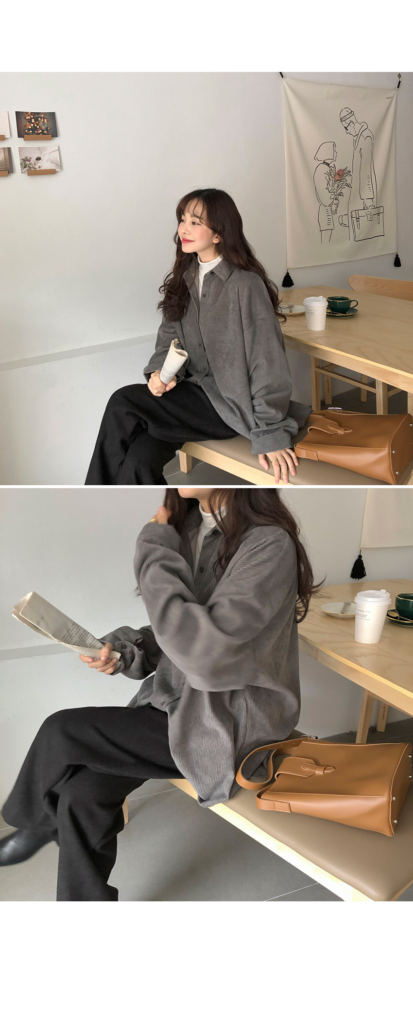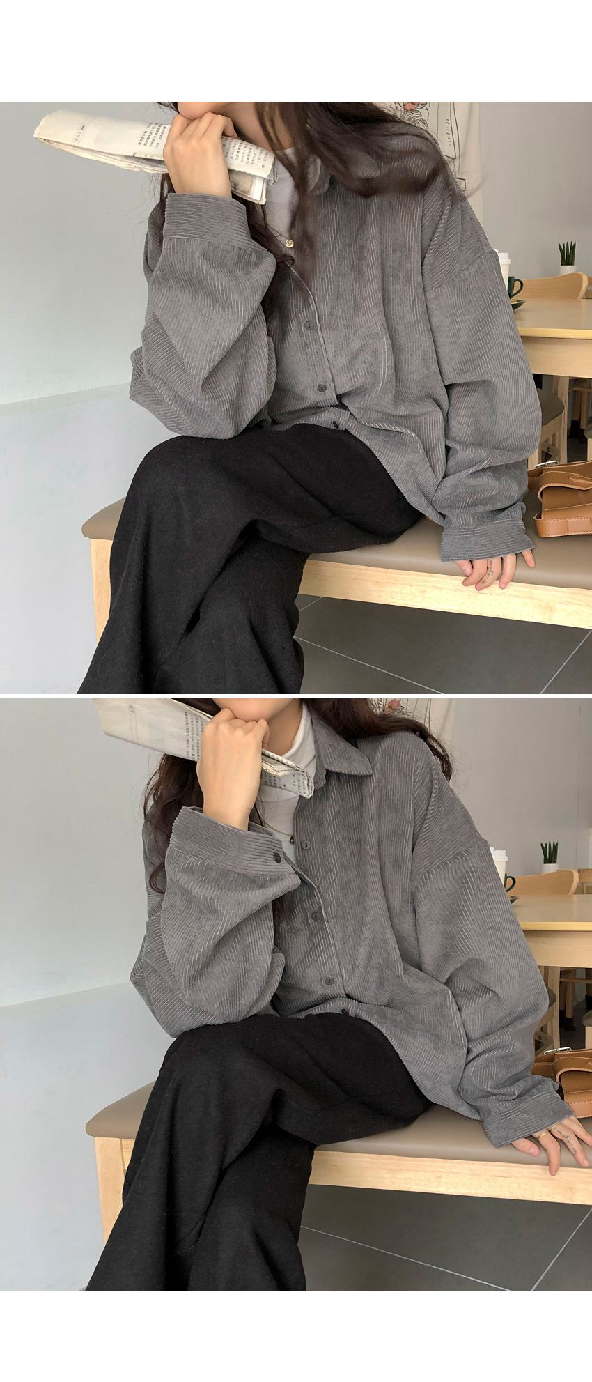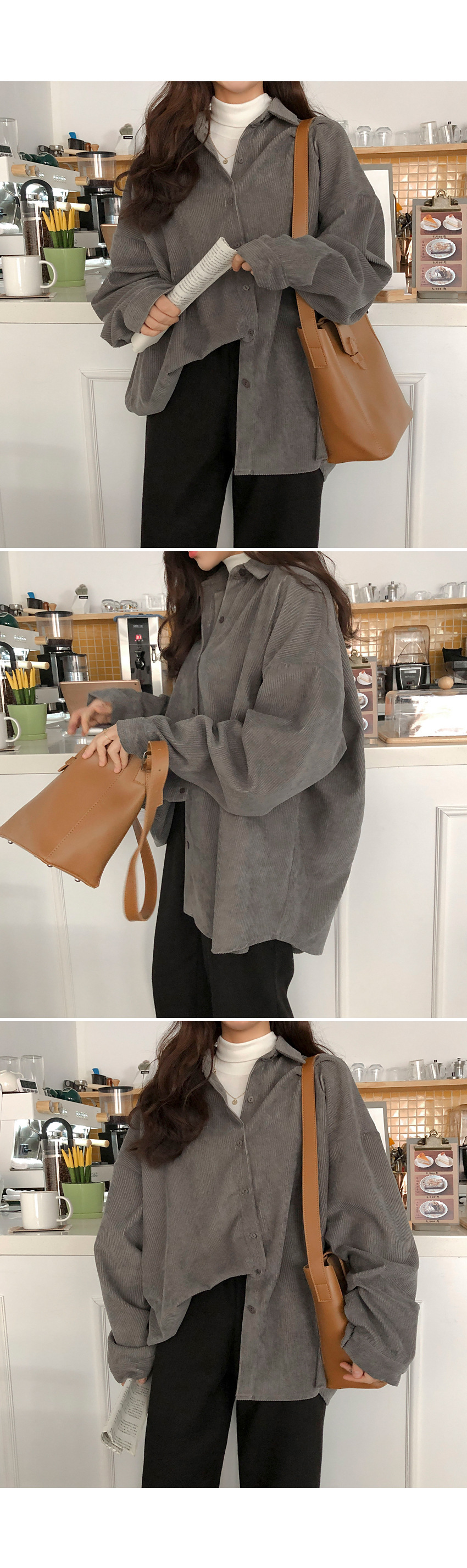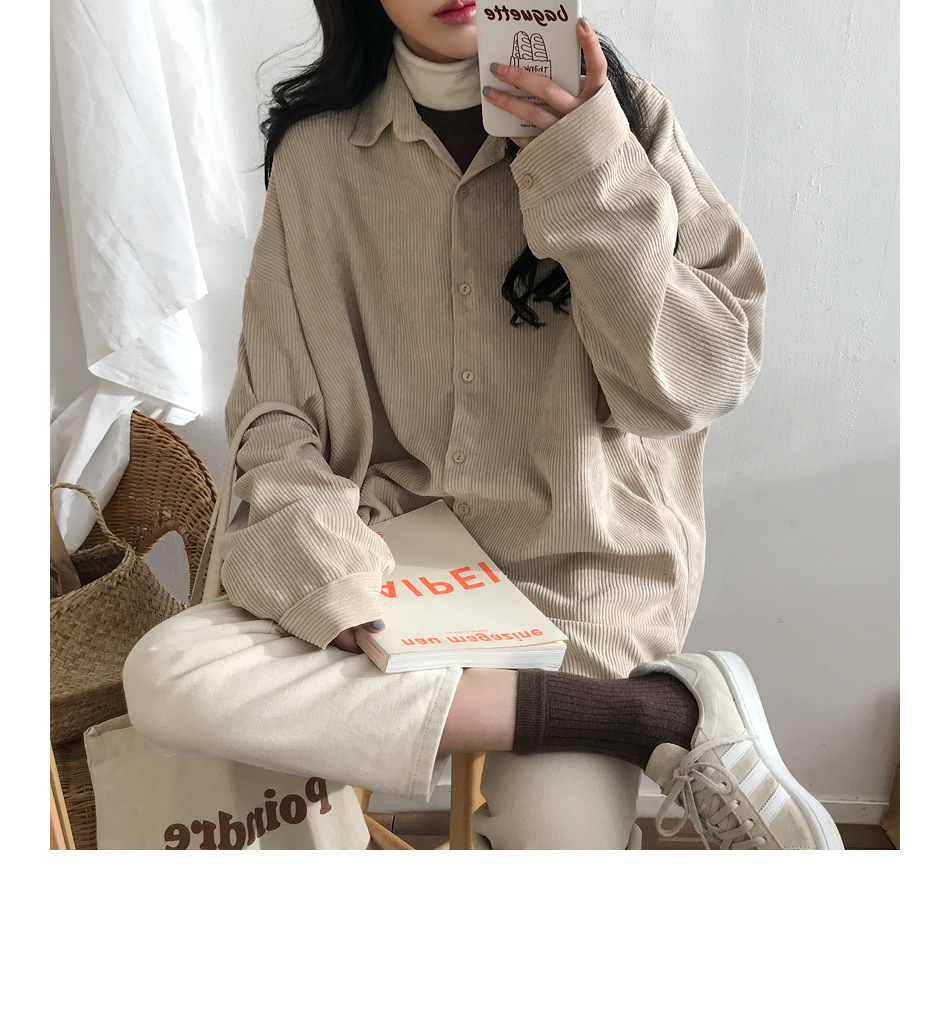 대외 무역 코듀로이 셔츠 여자의 가을 긴팔 느슨한 레이지 탑 중간 길이 셔츠 여자의 겉옷 모든 매치 재킷스토어 가기
