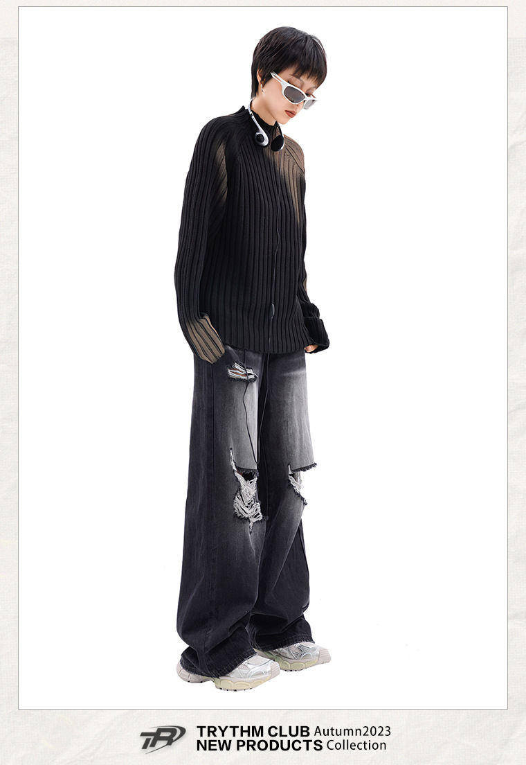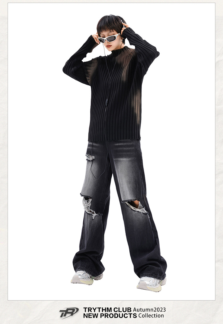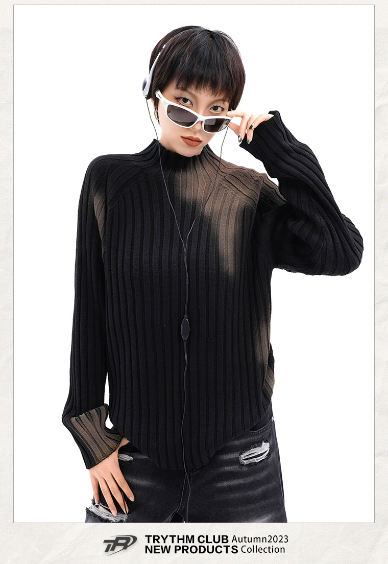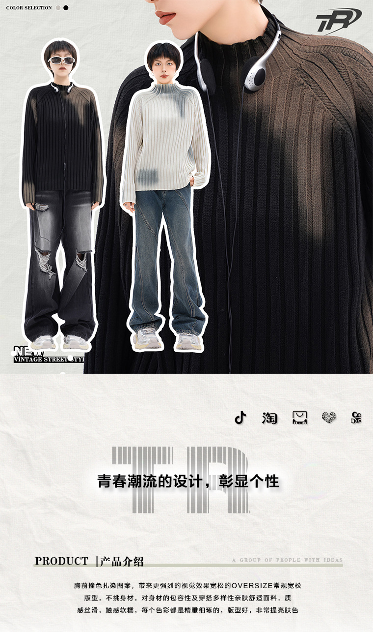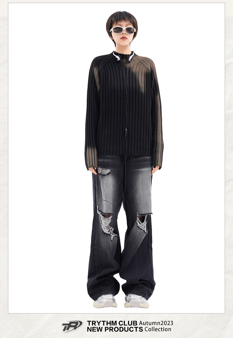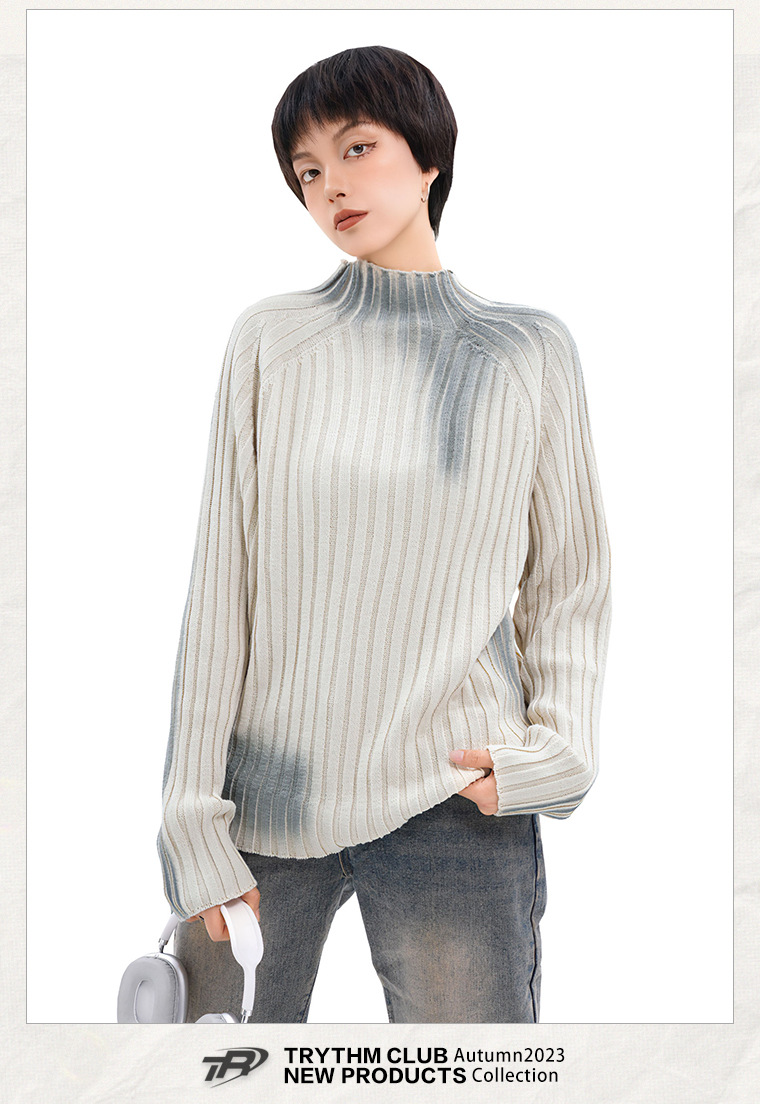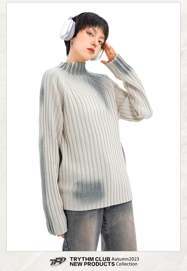 TRYTHMCLUB 아메리칸 타이다이 프라이드 스트리트 루즈한 니트 스웨터 2023 가을 남성 및 여성 패션 브랜드 스웨터의 모든 매치스토어 가기
