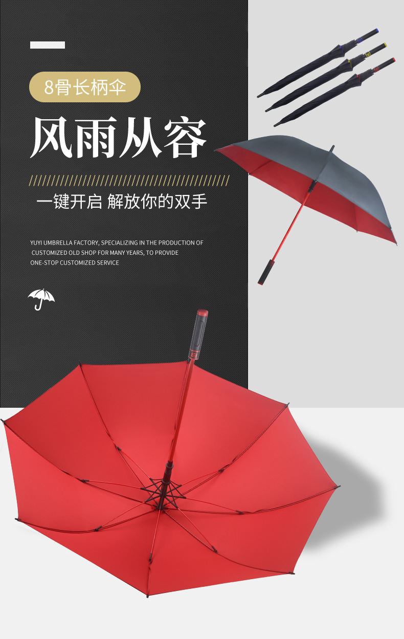 8 뼈 긴 손잡이 우산 뒤 우산 커버 골프 우산 초대형 이중 누출 방지 이중 우산 광고 우산 인쇄스토어 가기
