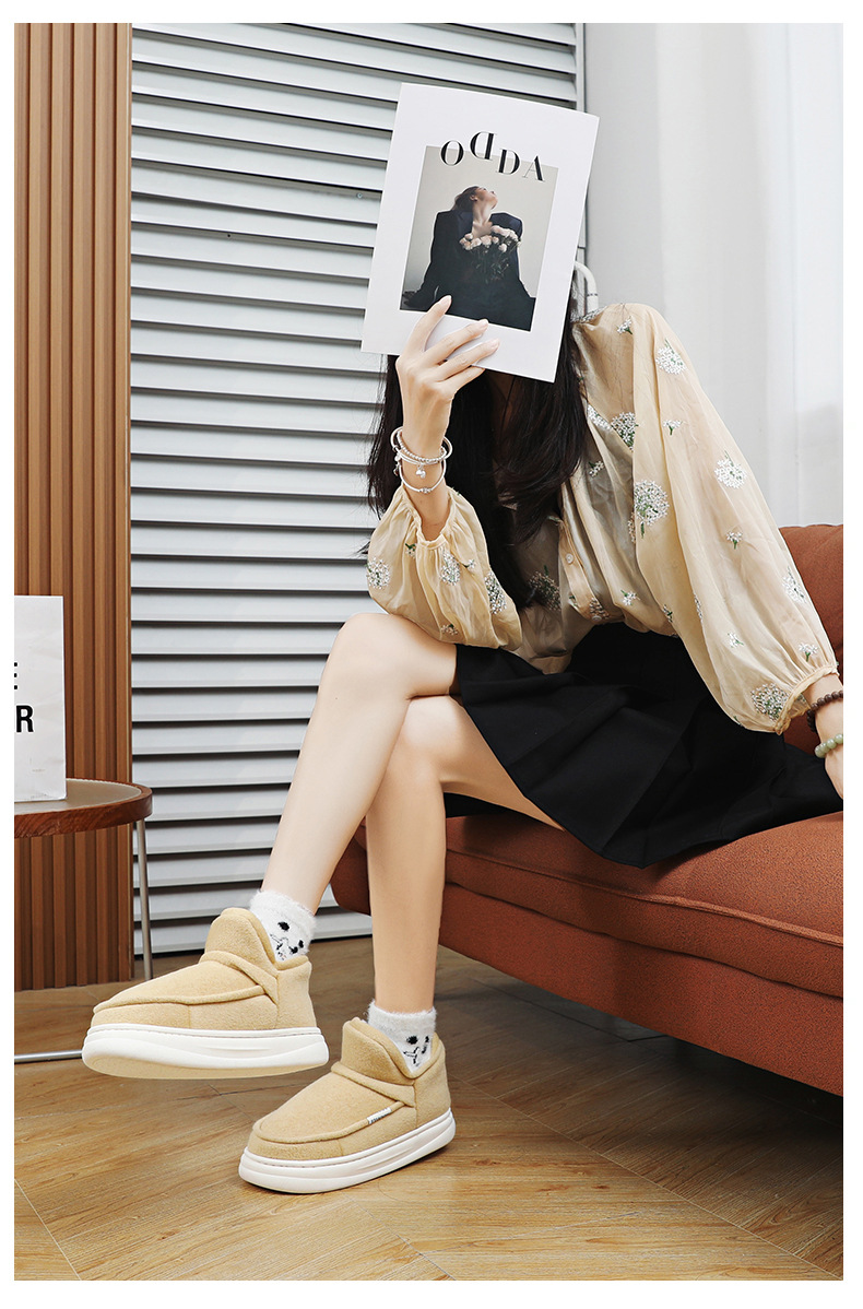 겨울 면 슬리퍼 여자의 귀여운 따뜻한 기모 두꺼운 면 단독 신발 여성용 가정용 실내 슬리퍼스토어 가기