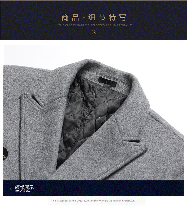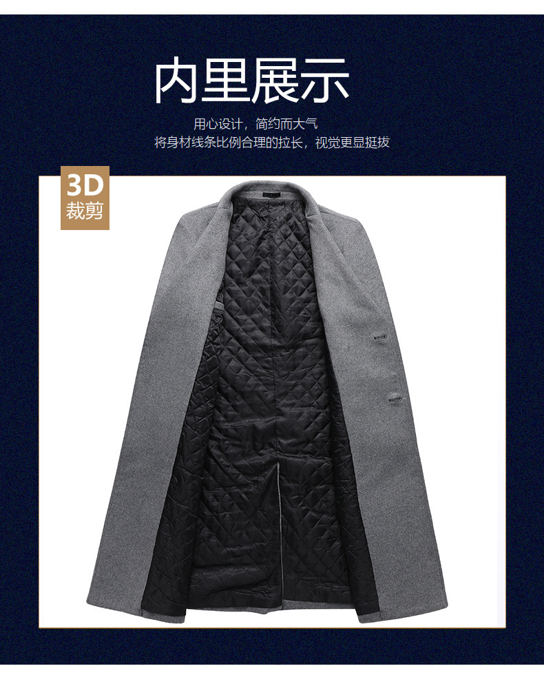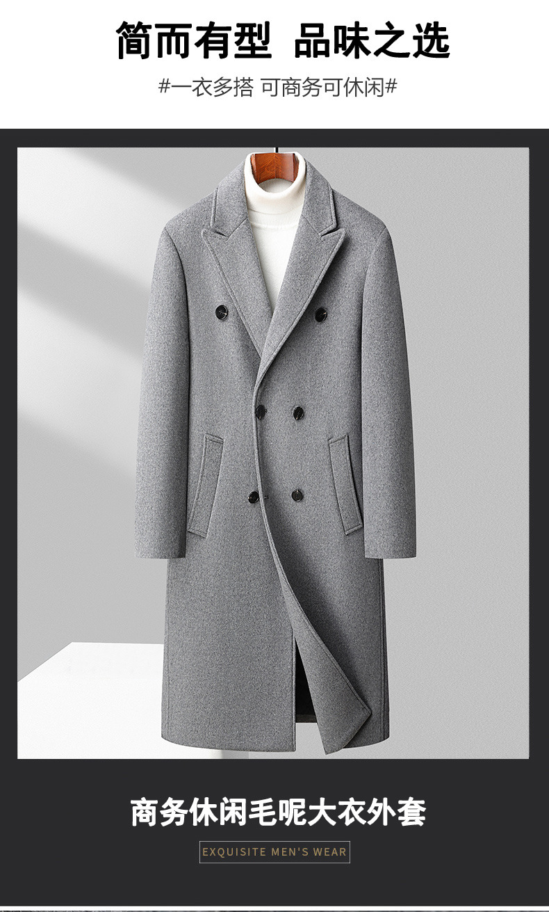 가을 겨울 신상 남성용 울 코트 롱 기장 무릎 아래 이중 버튼 구스다운 안감 탈부착 가능 울 코트스토어 가기