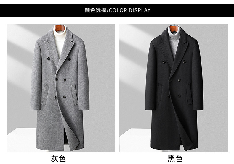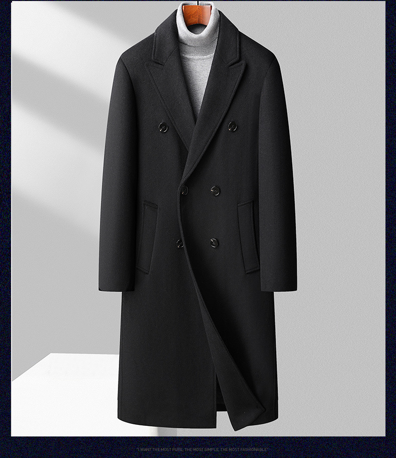 가을 겨울 신상 남성용 울 코트 롱 기장 무릎 아래 이중 버튼 구스다운 안감 탈부착 가능 울 코트