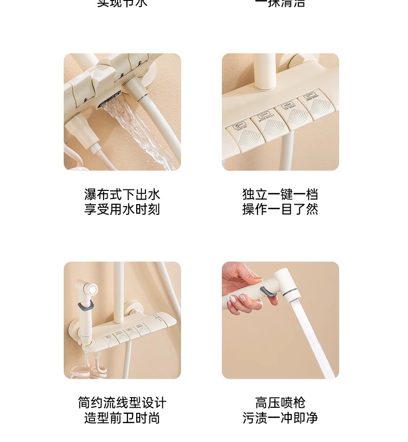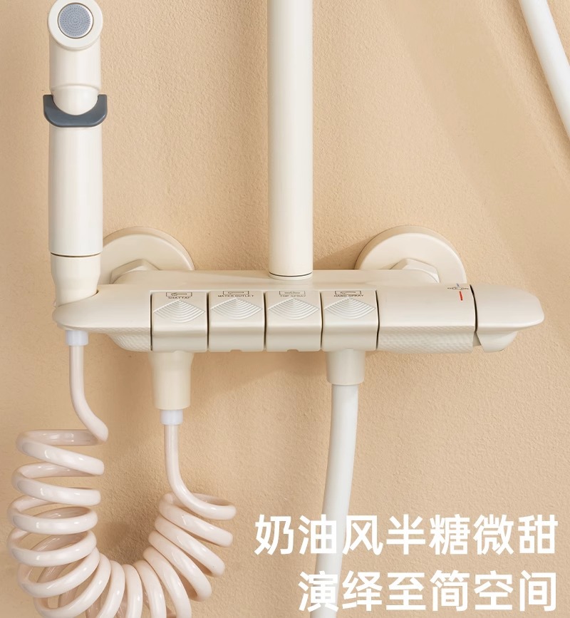 크림 바람 버튼 샤워 세트 부스터 욕실 전체 구리 화이트 샤워 헤드 전체 세트스토어 가기