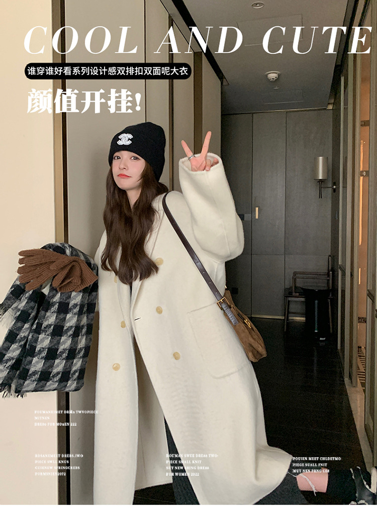 양면 캐시미어 코트 여성 가을과 겨울 2023 년 올해의 인기있는 고급 슈퍼 잘 생긴 작은 모직 코트스토어 가기