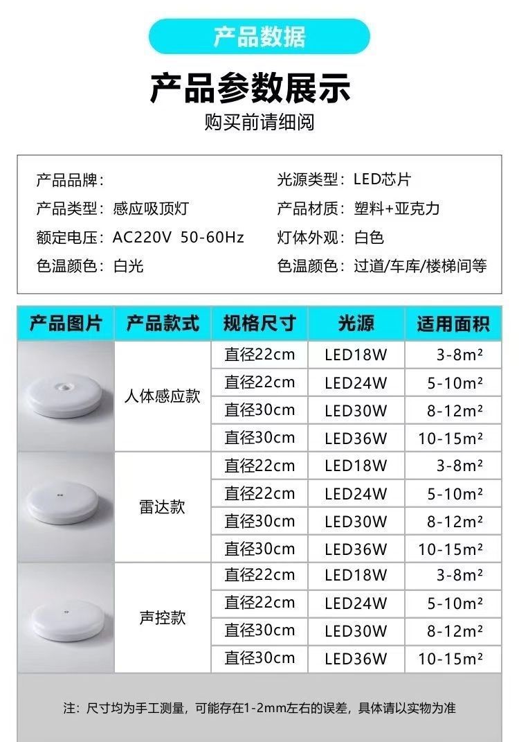 Led 유도 천장 램프 3 증거 유도 천장 램프 인체 레이더 소리 및 조명 제어 유도 천장 램프 인간 보행 램프 꺼짐스토어 가기