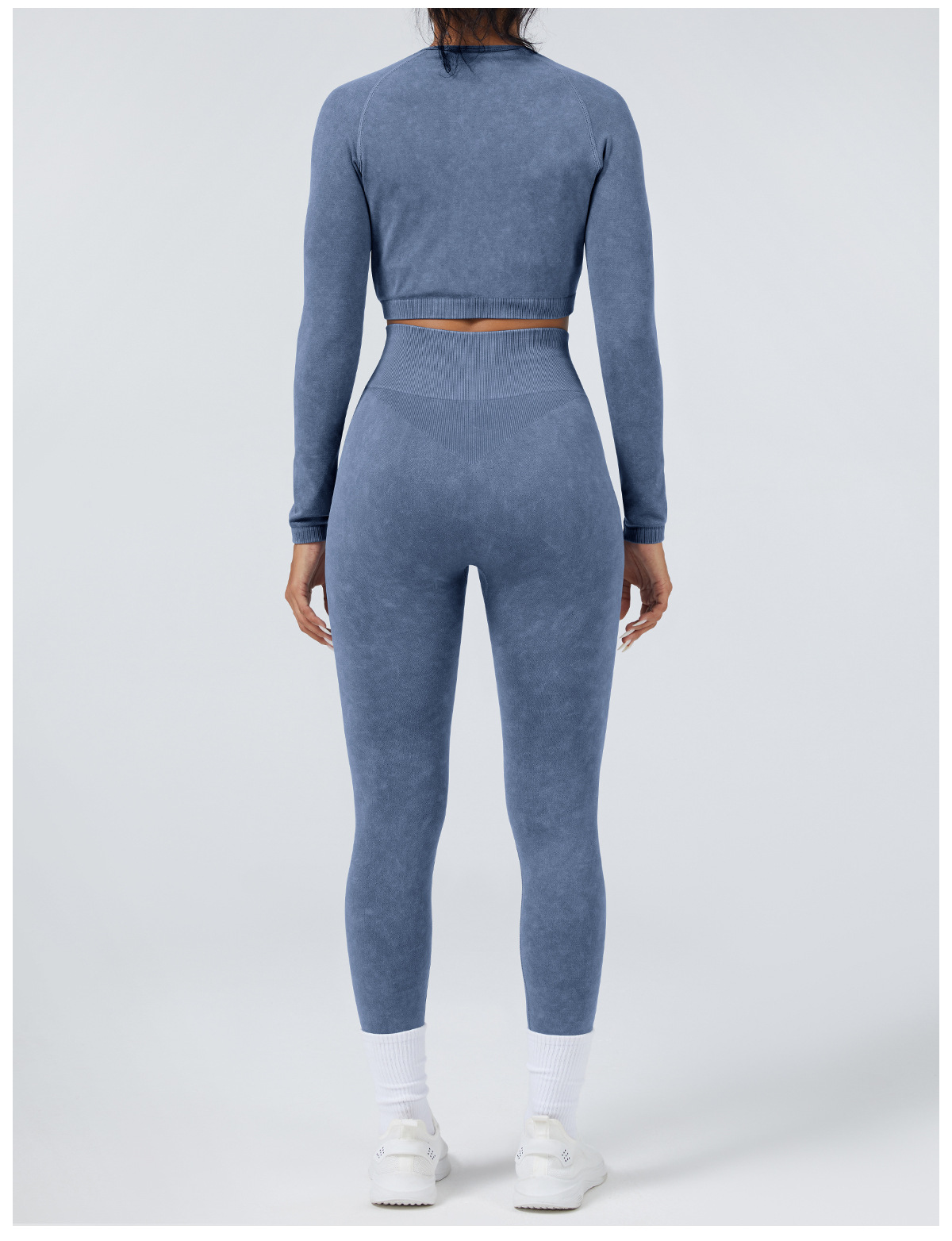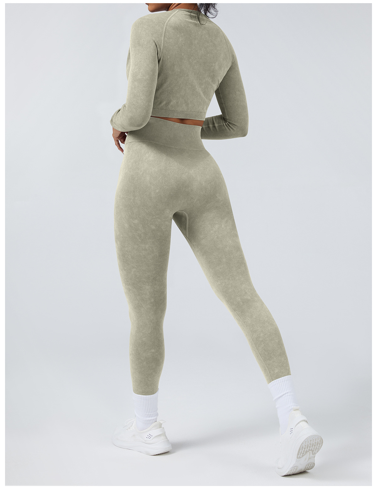 크로스보더 유럽 및 미국 스타일 샌드워싱 스포츠웨어 피트니스복 심리스 타이트 하이웨이스트 스포츠 팬츠 여성용 요가복 세트