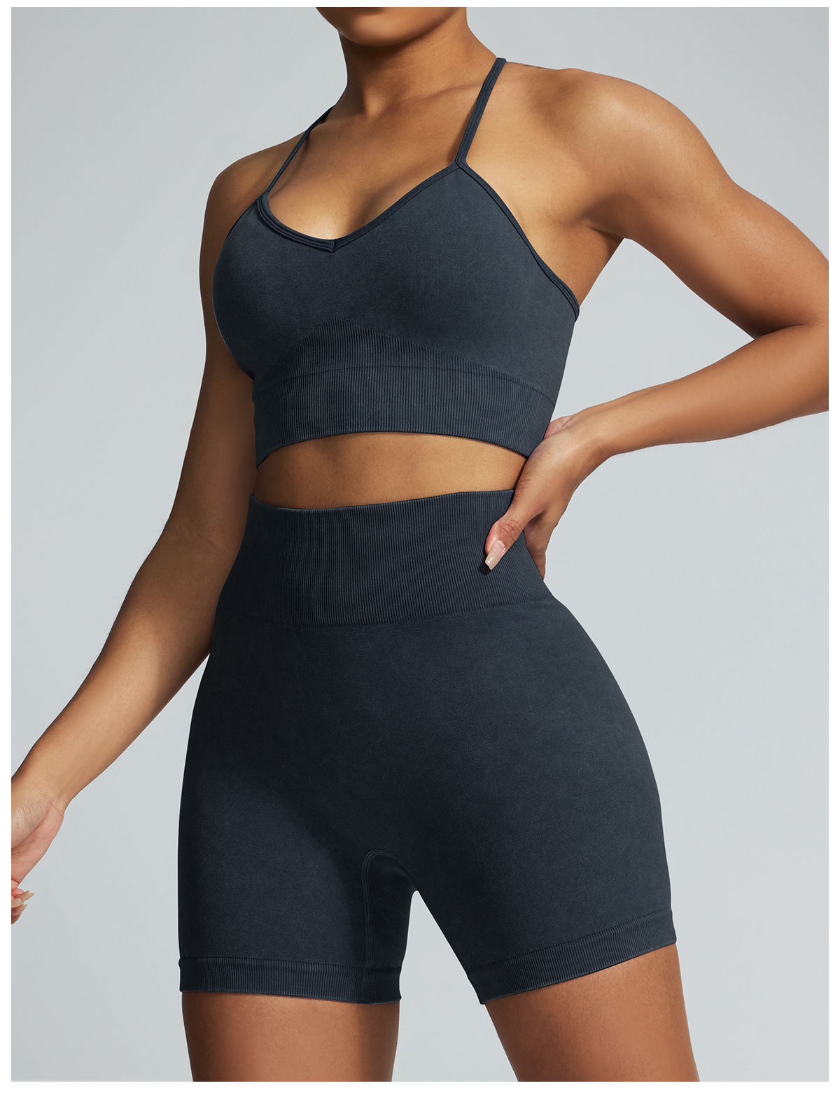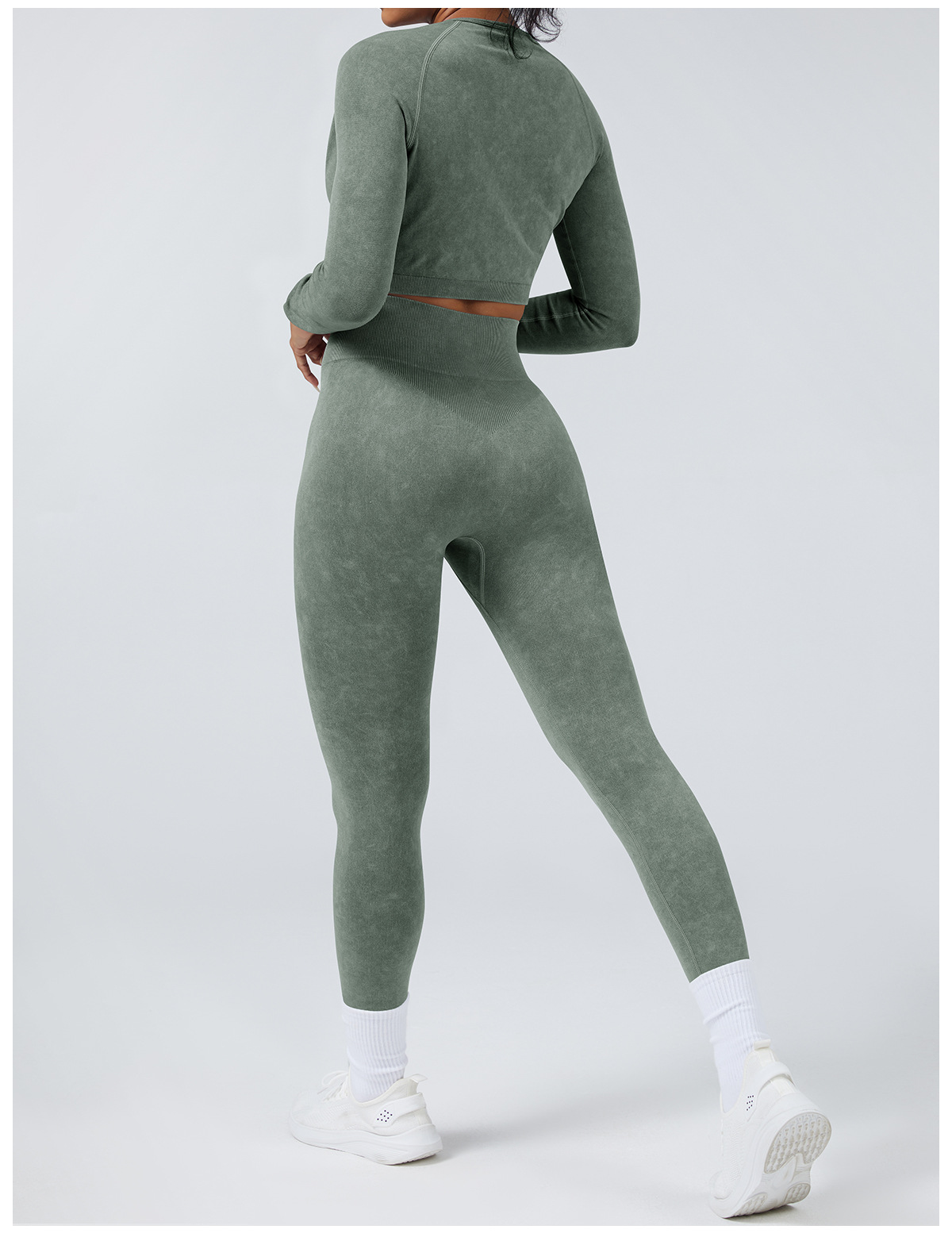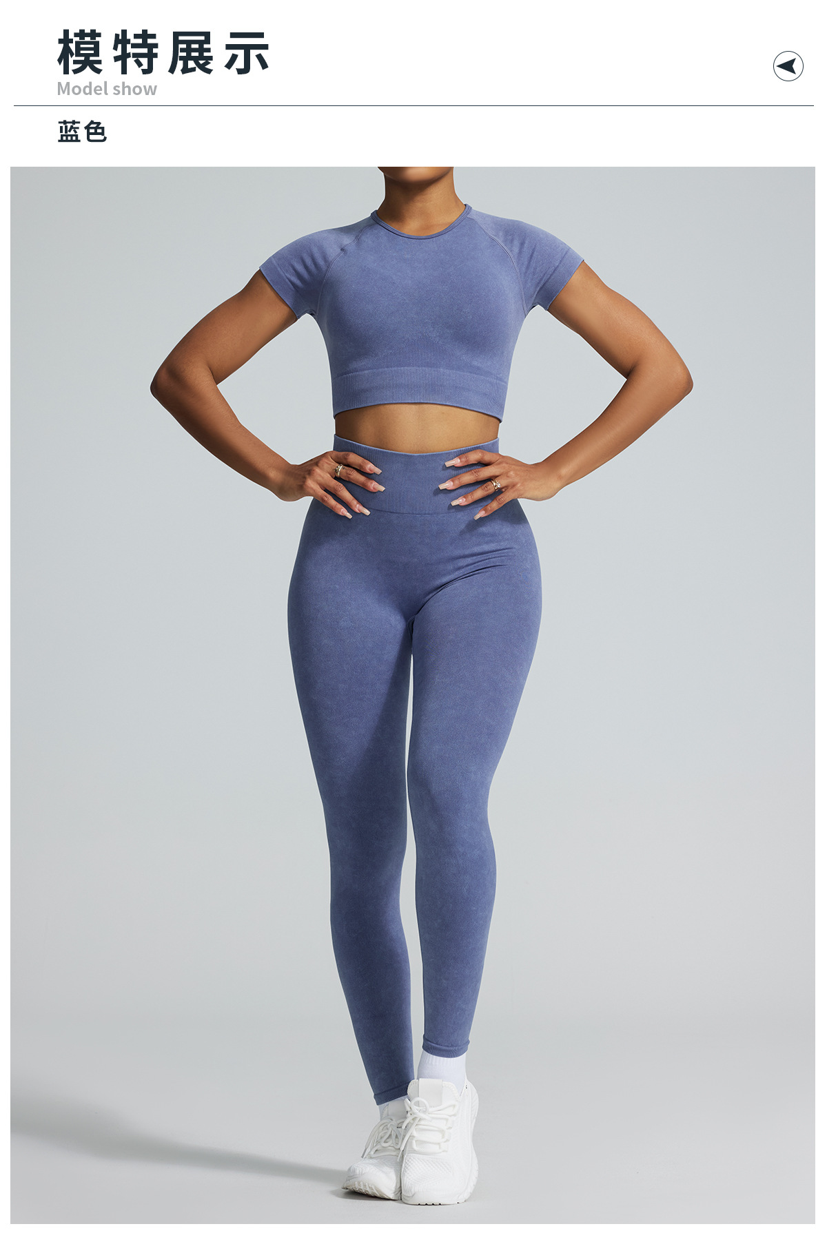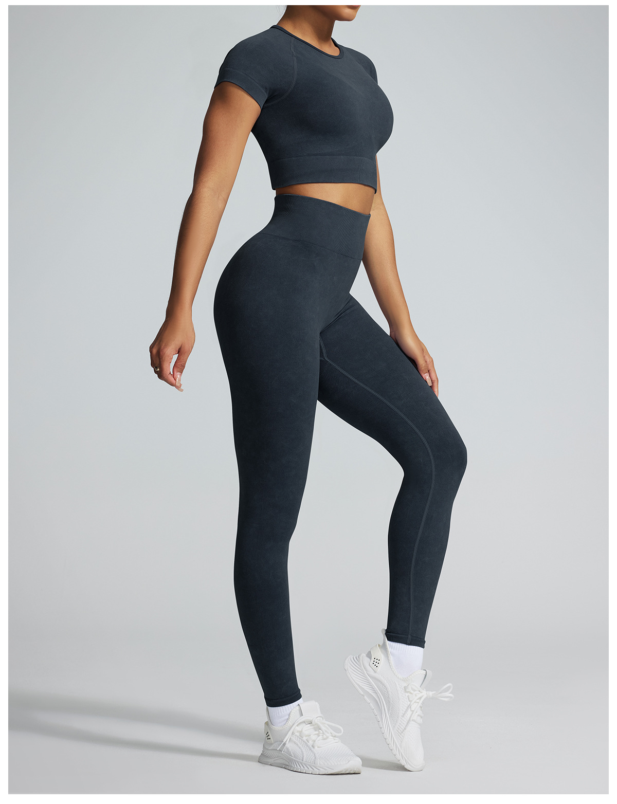 크로스보더 유럽 및 미국 스타일 샌드워싱 스포츠웨어 피트니스복 심리스 타이트 하이웨이스트 스포츠 팬츠 여성용 요가복 세트스토어 가기