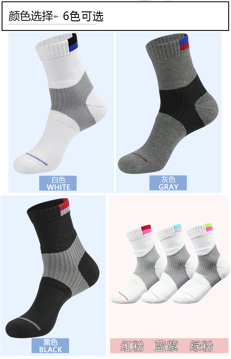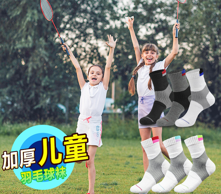 남성과 여성의 어린이 배드민턴 양말 두꺼운 수건 바닥 전문 청소년 스포츠 양말 중간 튜브 땀 흡수 통기성 미끄럼 방지