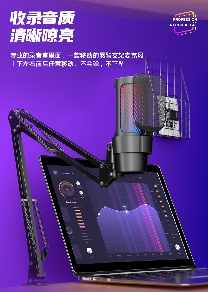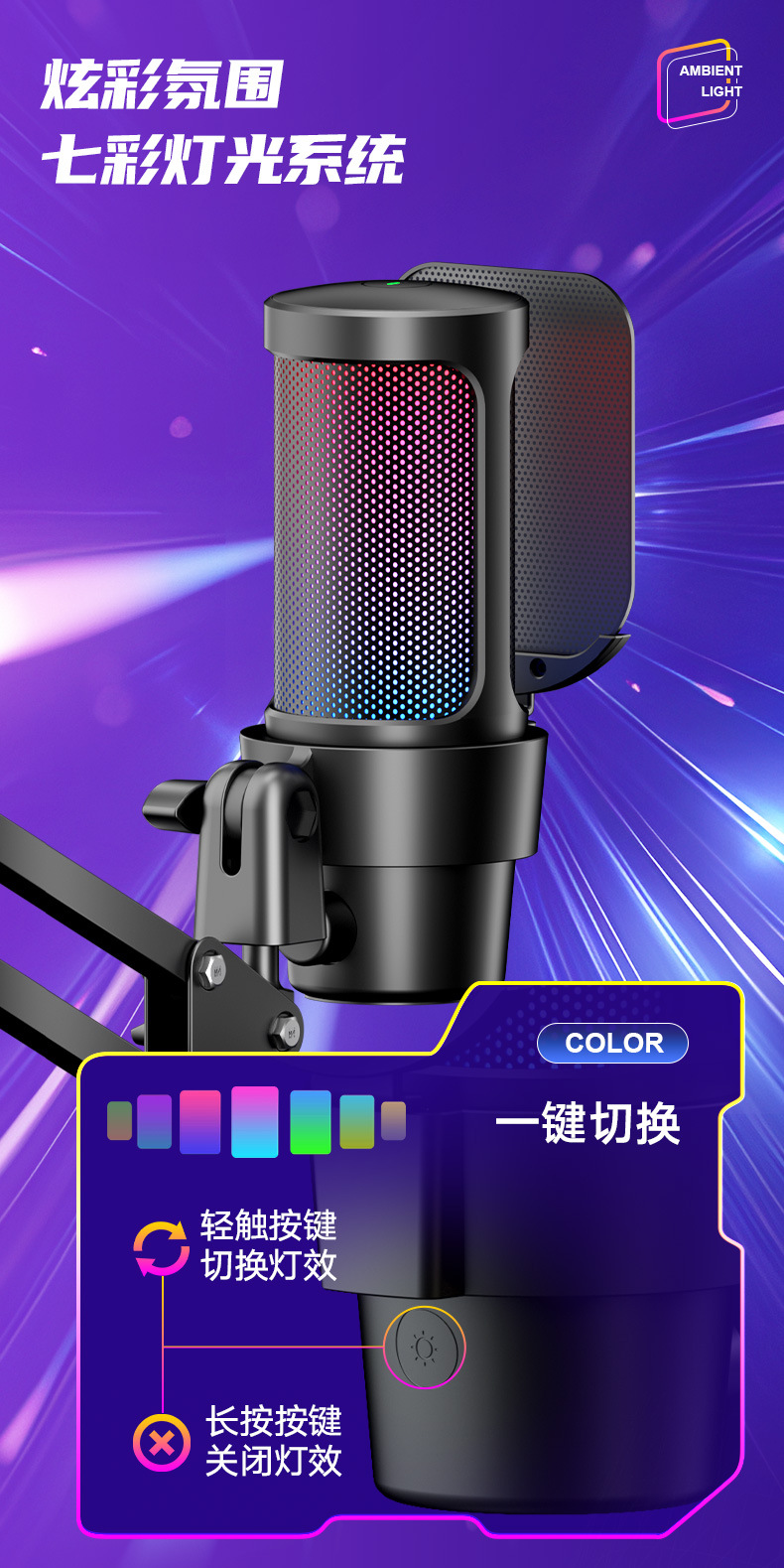 RGB 램프가있는 다채로운 USB 콘덴서 마이크 컴퓨터 휴대 전화 네트워크 라이브 게임 경쟁 녹음 앵커 마이크
