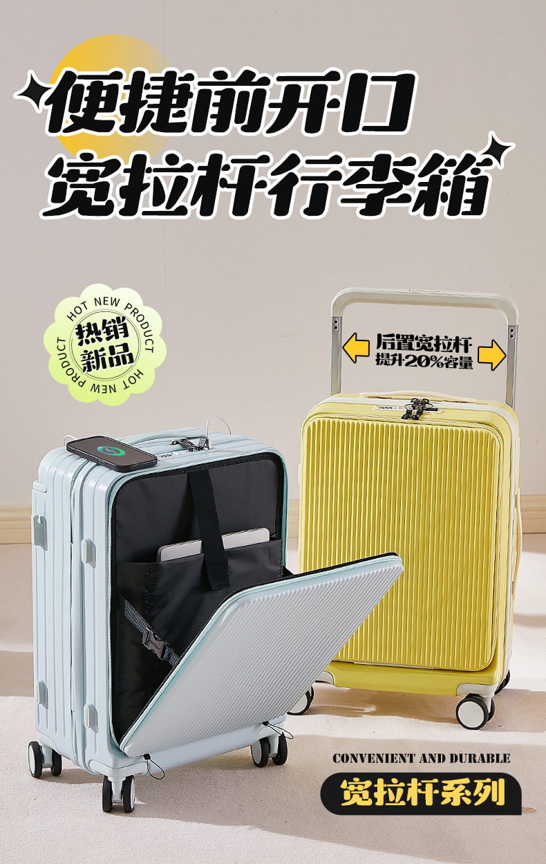 트렁크 룸 프론트 오프닝 와이드 풀로드 여성용 20 인치 휴대용 보딩 박스 전면 오픈 커버 다기능 가방 남성용 24 인치스토어 가기