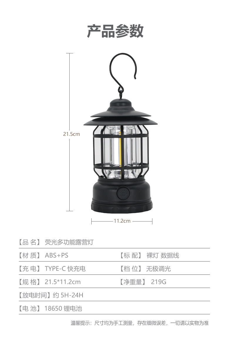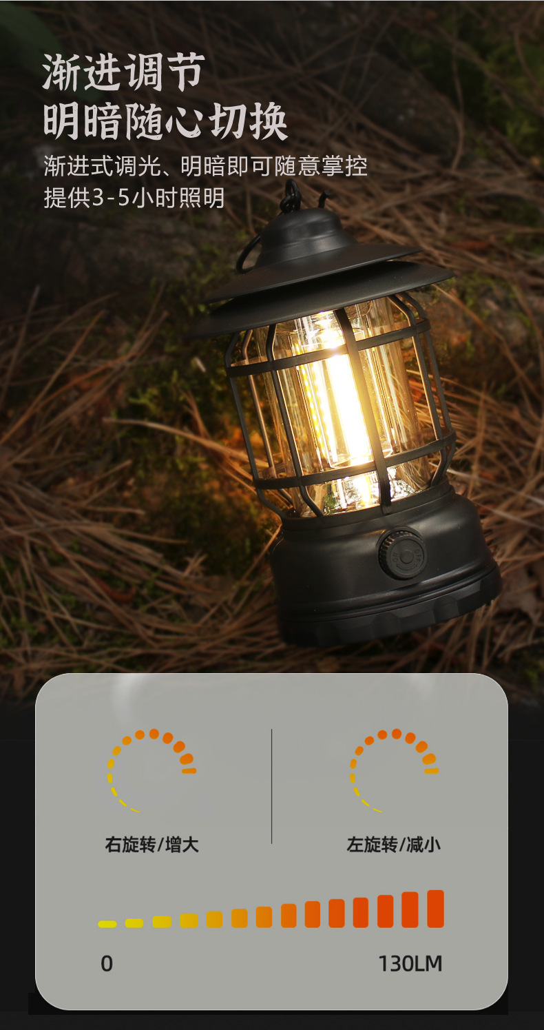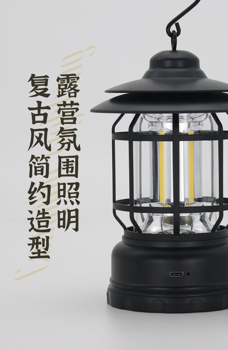 캠핑 랜턴, 다기능 레트로 랜턴, 텐트용 휴대용 작업/비상/야외 조명, 충전식
