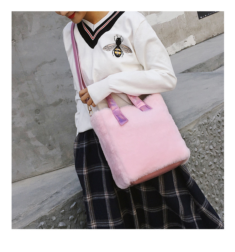 가을과 겨울 패션 귀여운 봉제 가방 크로스 바디 백 여자의 단색 간단한 핸드백 손 운반 인기있는 소녀 작은 가방스토어 가기