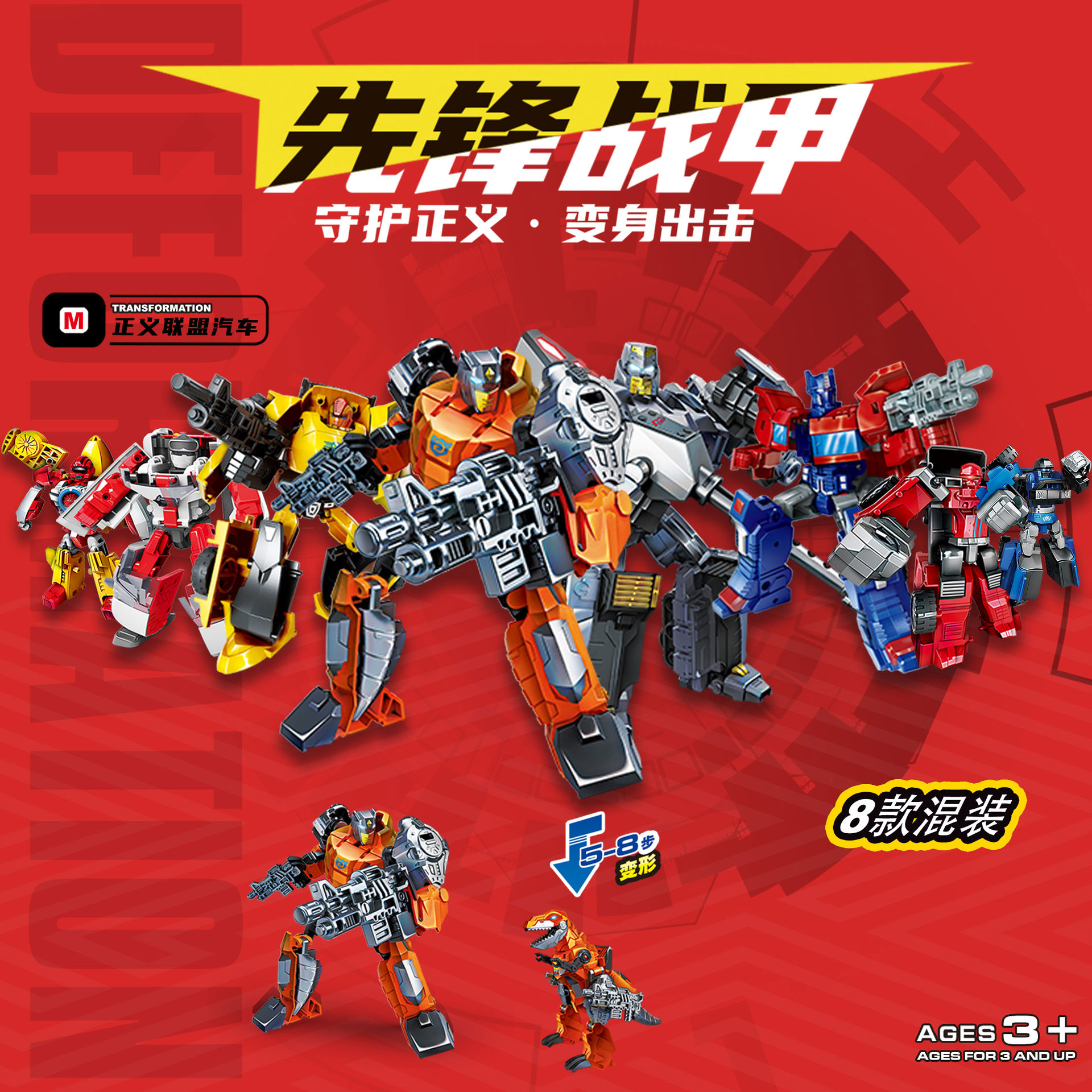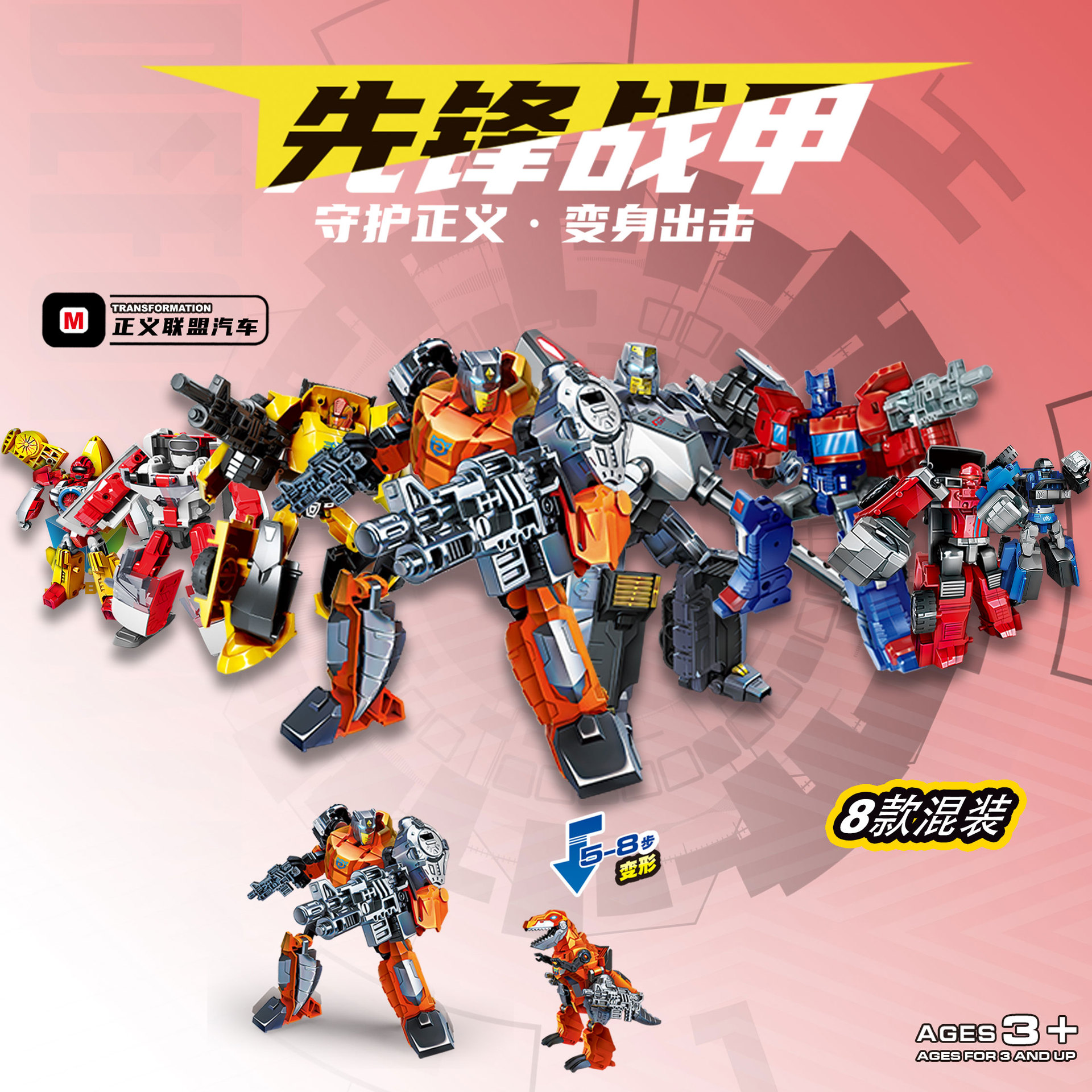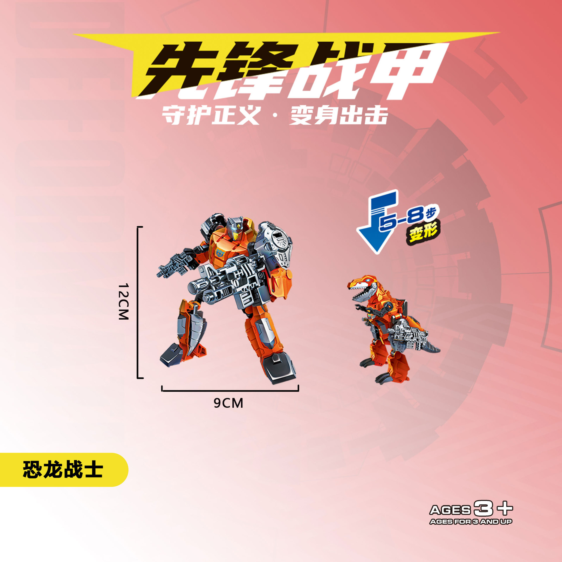 개척자 전쟁 갑옷 자동차 변형 로봇 공룡 이중 형태 어린이 손 모델 소년 장난감의 전체 범위
