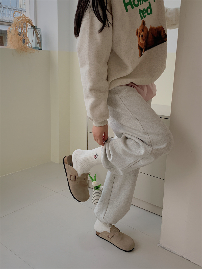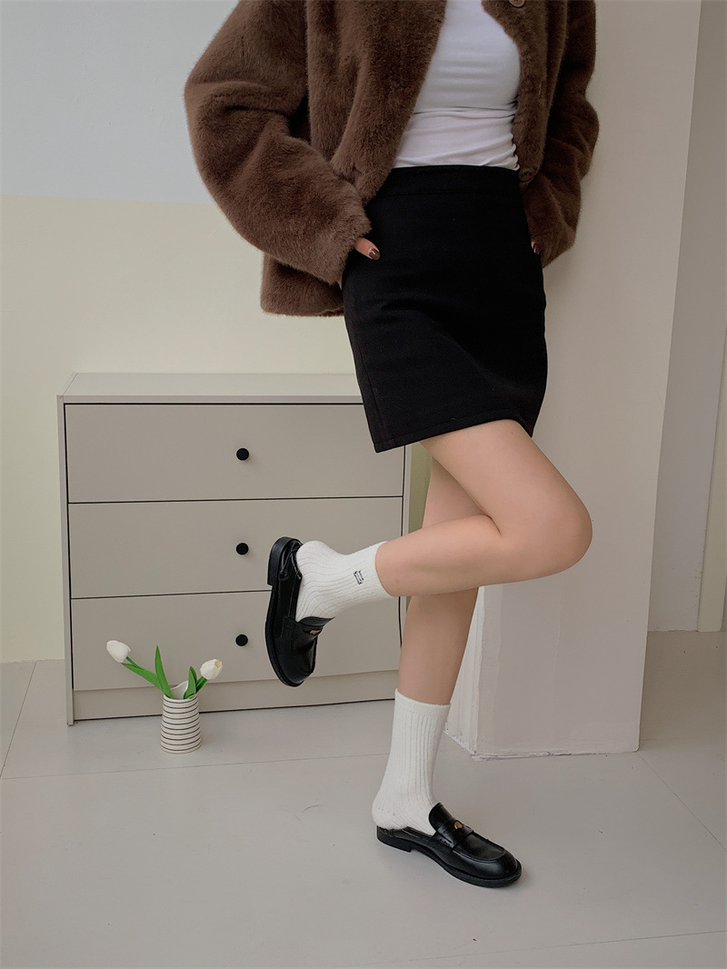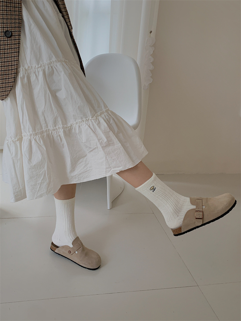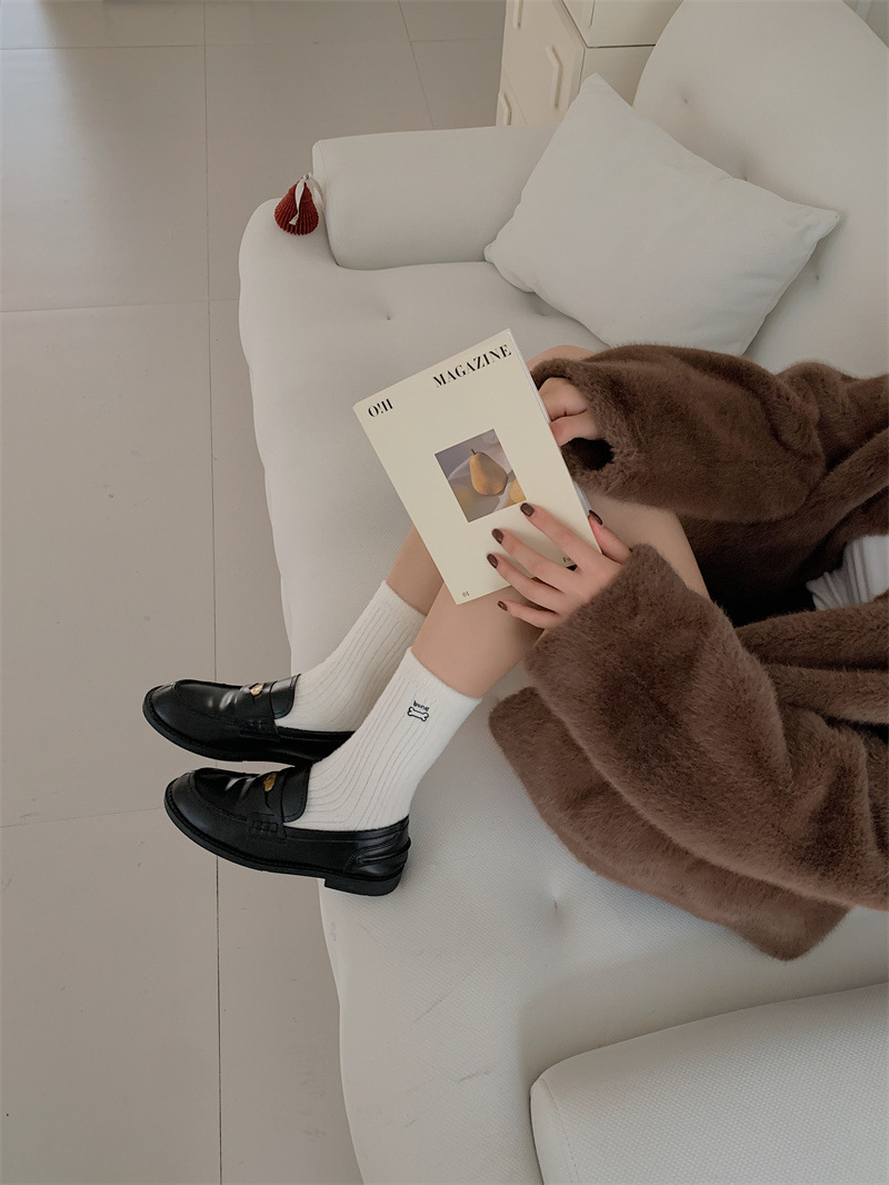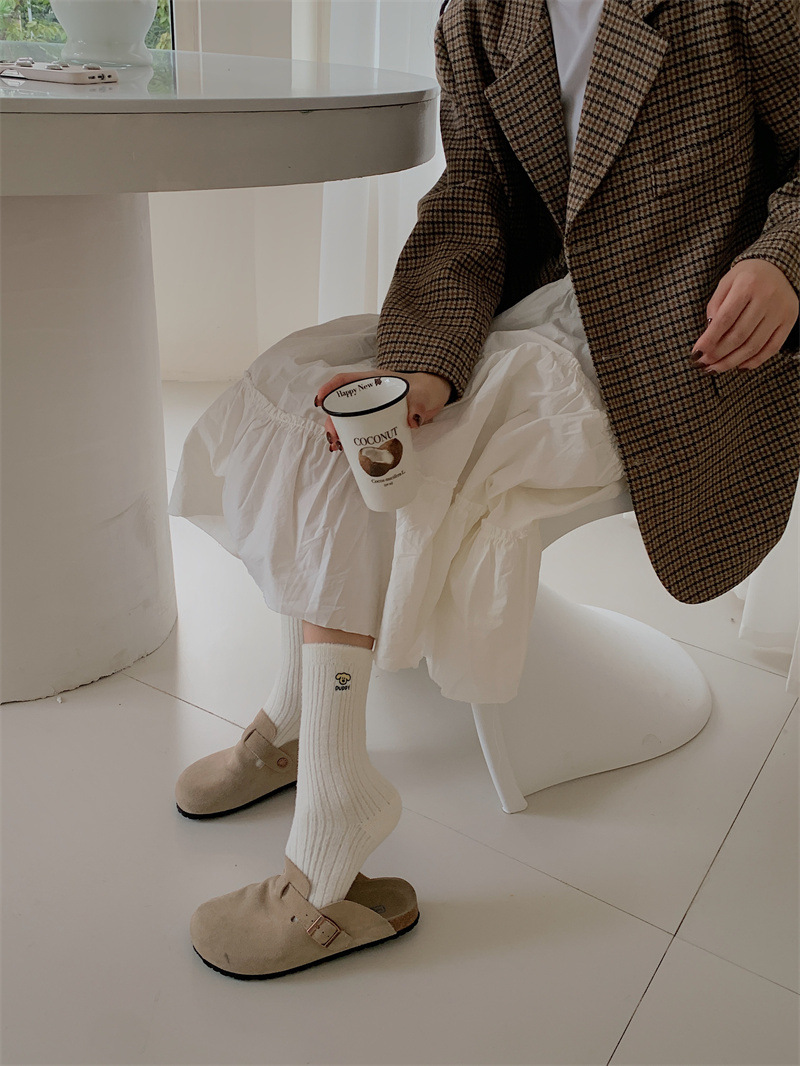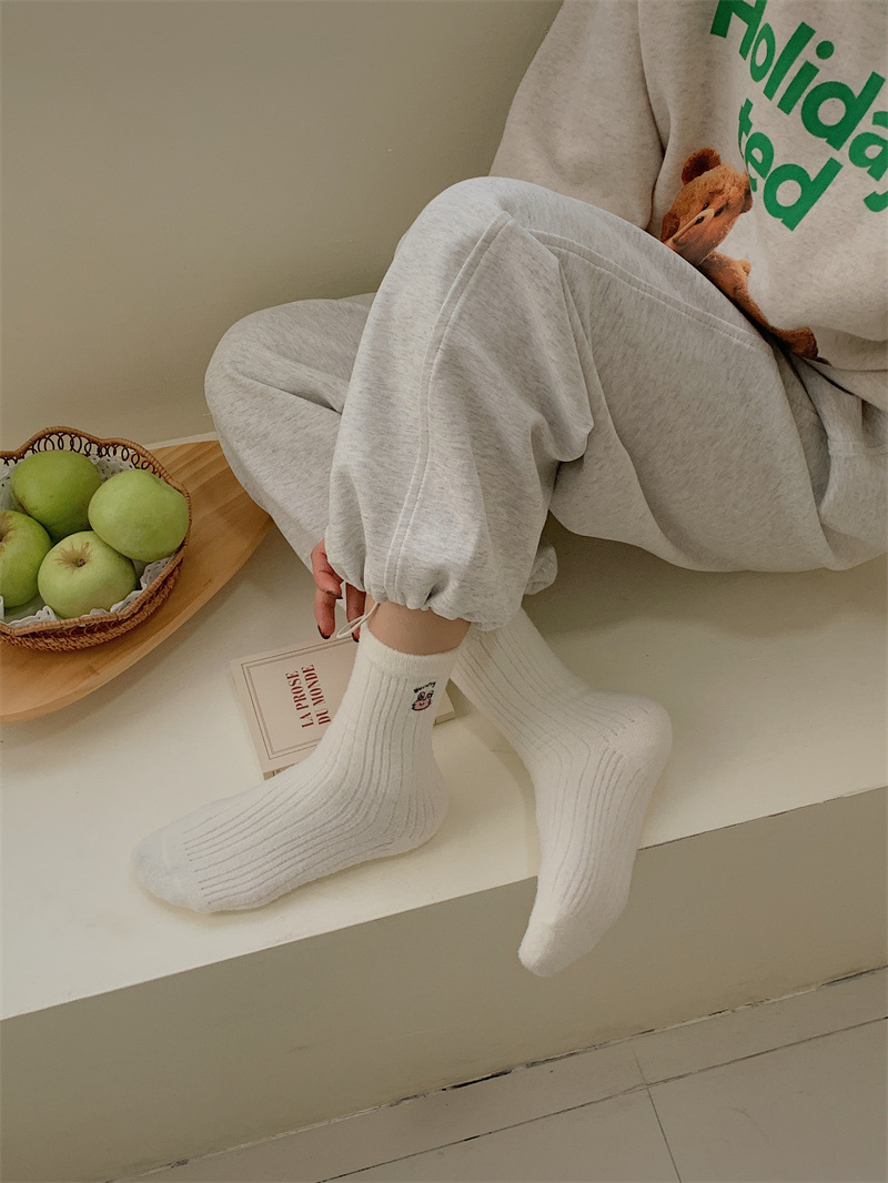 일본 단색 귀여운 두꺼운 흰색 만화 자수 중간 튜브 가을과 겨울 양말 여성용 모조 밍크 벨벳 홈 바닥 양말스토어 가기